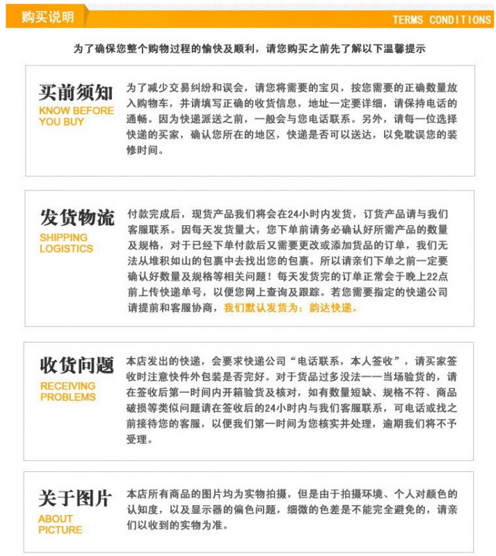 弊社が取り扱っている商品は、自社の海外工場から直送しています。ご入金が確認でき次第に商品を発送いたします。ご注文殺到時や、ご注文数量、種類が多い場合は、発送が遅れる可能性がございます、ご了承ください。ご注文商品の中に在庫がない商品につき、その商品のみキャンセルさせていただき、在庫のある商品のみをまとめて発送させていただきます。また、ご注文後の商品追加や、内容変更、同梱などはお受付しておりません。