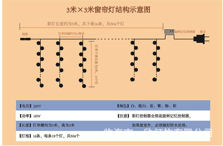 • 110V美规3*3米窗帘灯