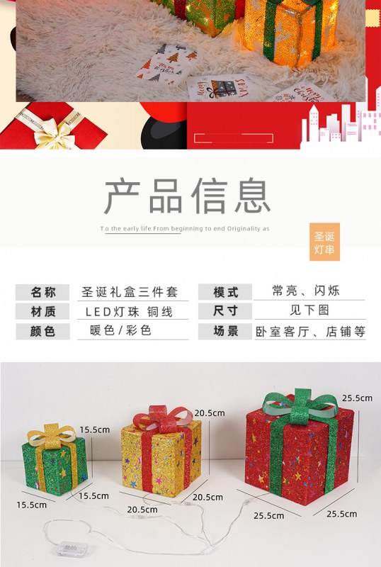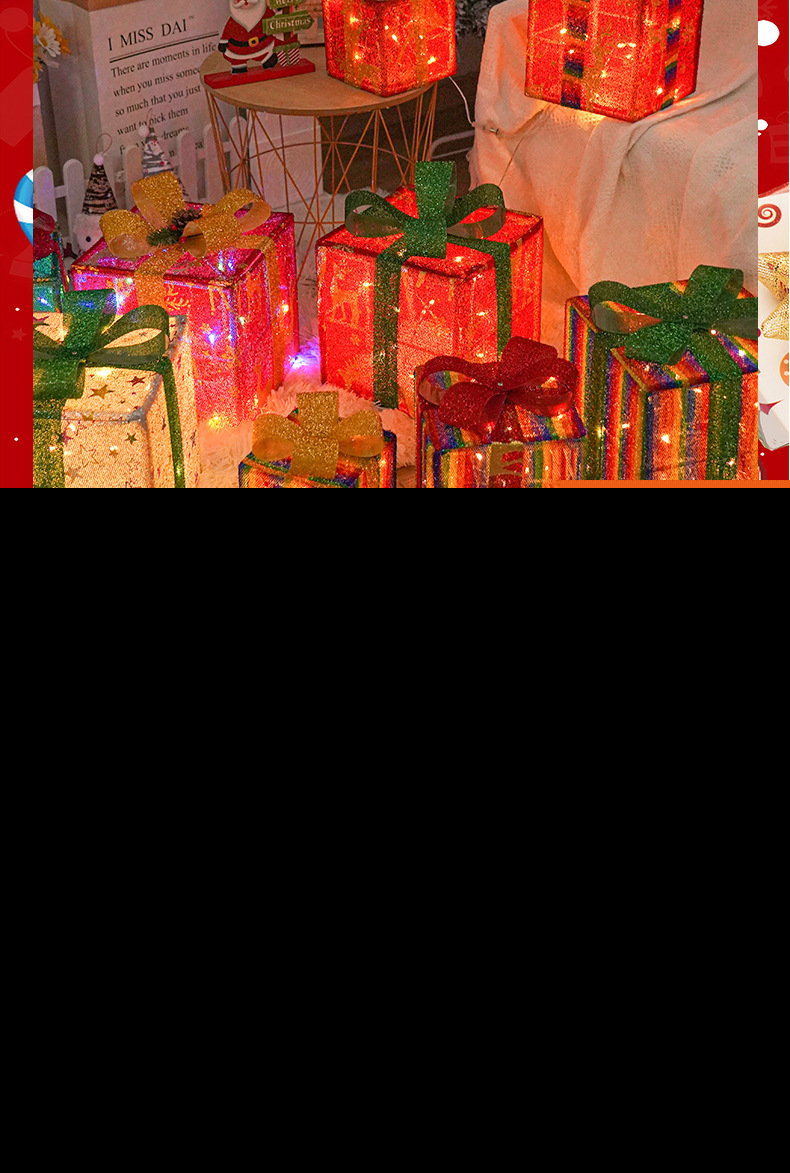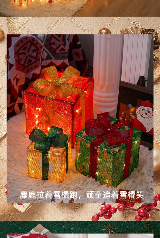 • 新しいクリスマスギフトボックス 3 点セット折りたたみライトストリングホリデー小道具ギフトボックスの装飾品装飾ライト