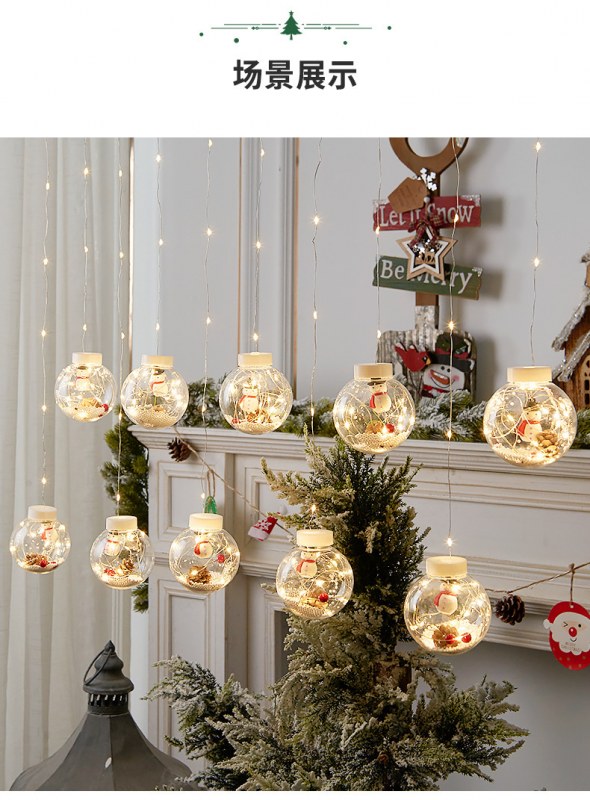 • LEDクリスマスウィッシングボールカーテンライト、老人雪だるまクリスマスウィンドウロマンチックなショッピングモールペンダント雰囲気装飾