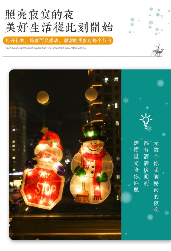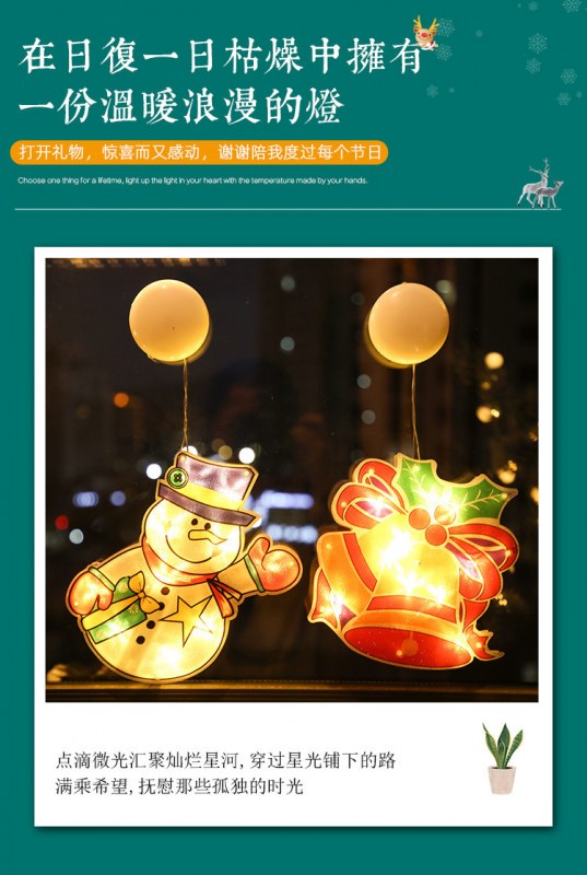 • LEDクリスマス装飾吸盤ライト店の窓吊り下げライトクリスマスの形の装飾的なカラフルなライトストリング