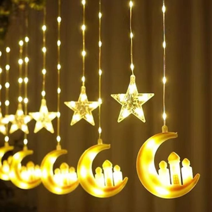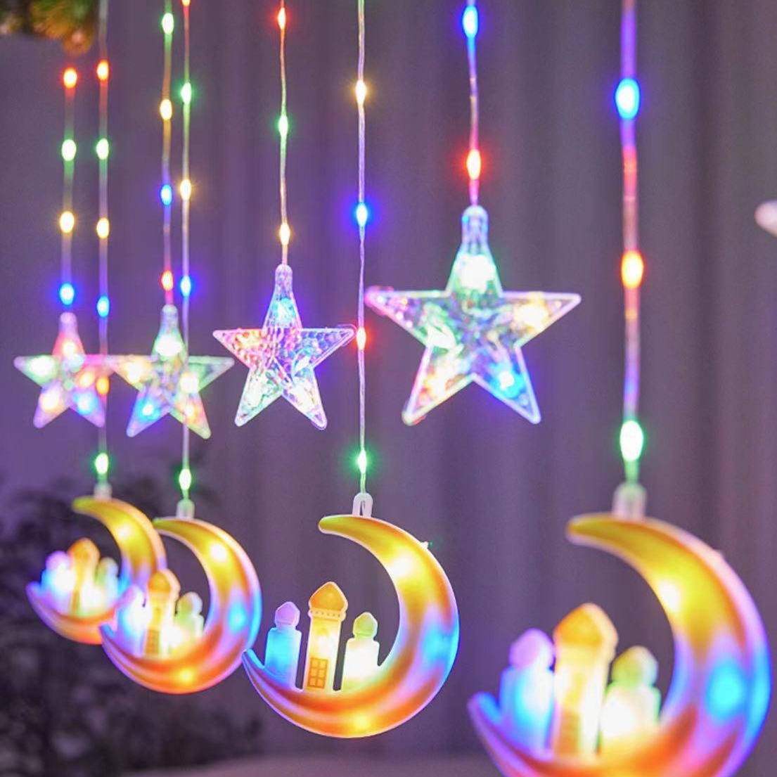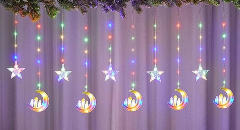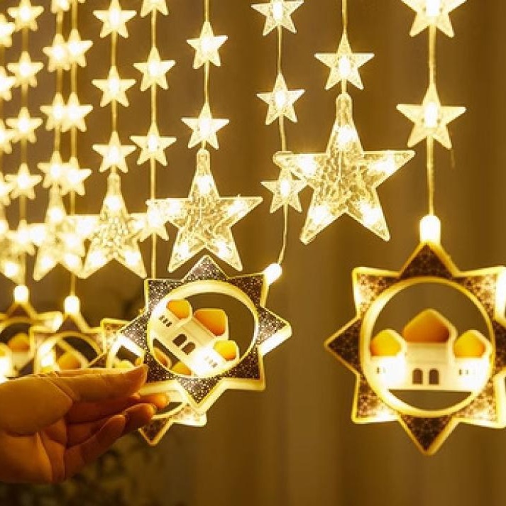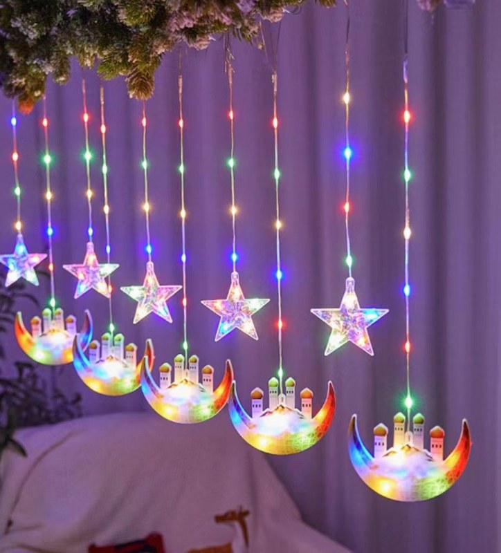 • LED塗装革糸星と月カーテンランプ室内装飾10吊り月五芒星城色