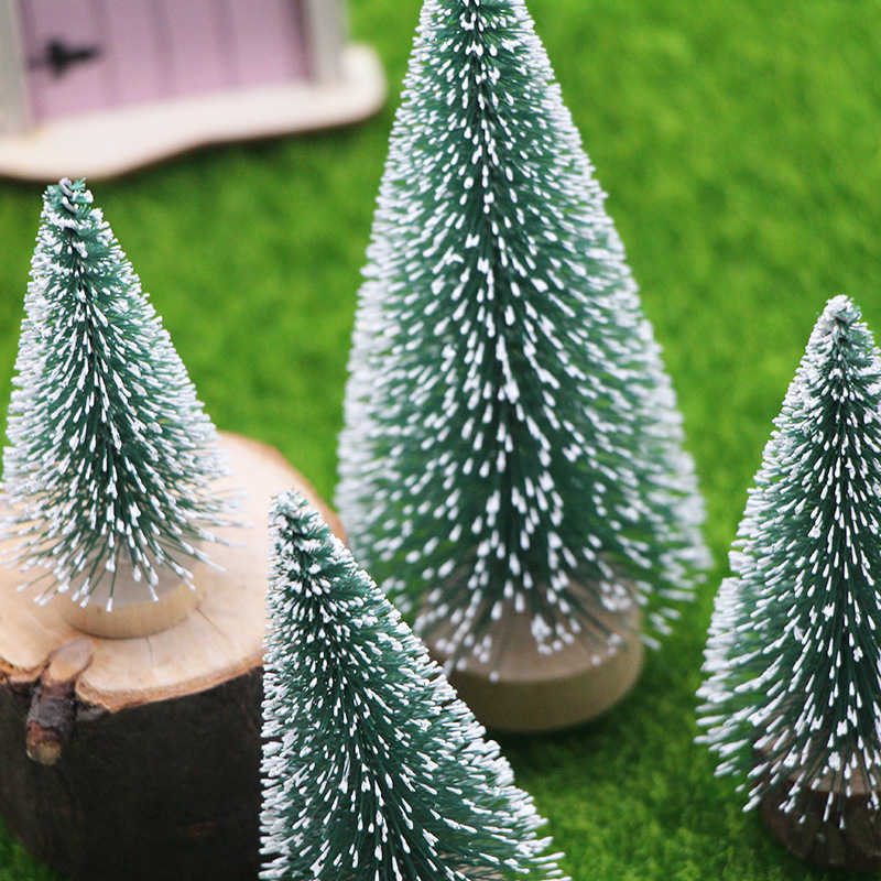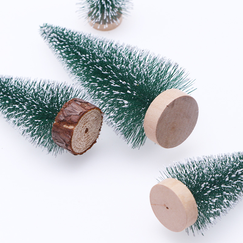 • クリスマスの小さなクリスマスツリー、雪に覆われたミニ松葉ツリー、デスクトップウィンドウオーナメント、模擬樹皮ベースのクリスマスツリー