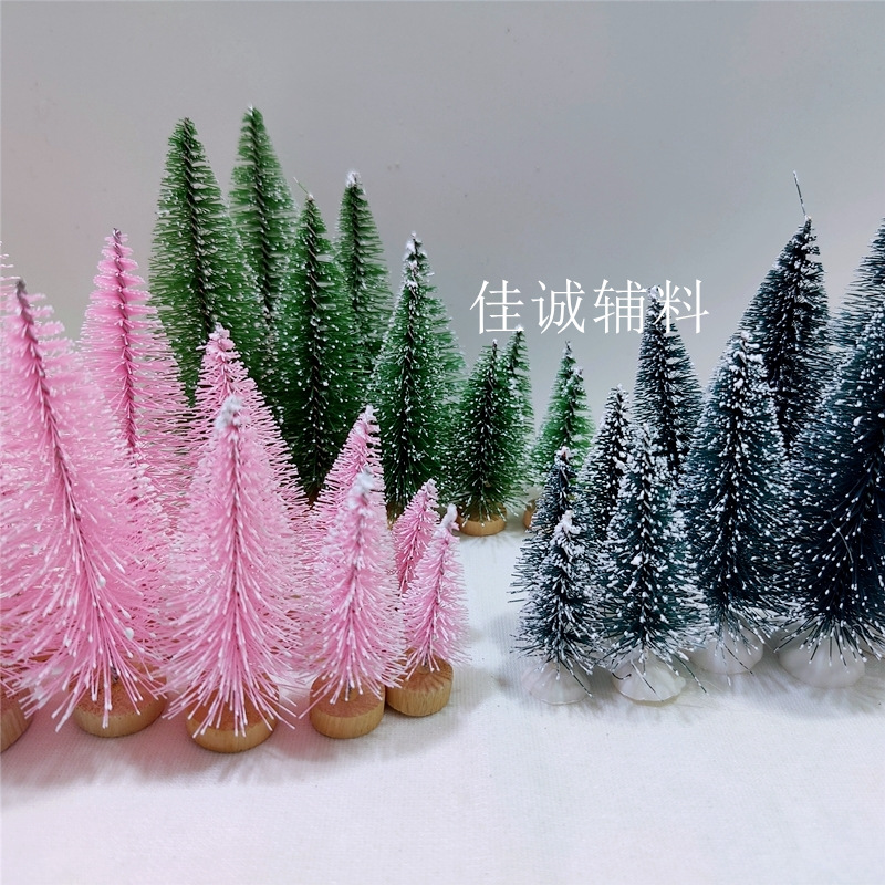 • ピンクとグリーンのミニクリスマスツリー、接着剤に雪のグリッター、タピン、デスクトップデコレーション、小さなクリスマスツリー5-12.5cm