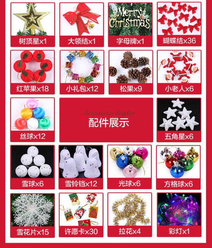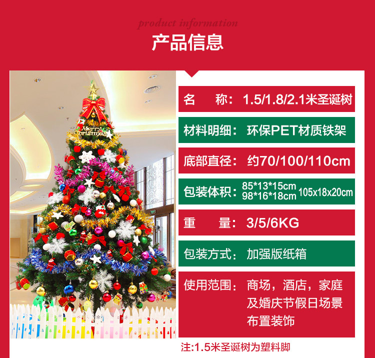 • 1.8 メートルのクリスマスツリーパッケージ 2.1 メートルの大型セット発光クリスマスツリー 1.5 メートルのホームクリスマス装飾