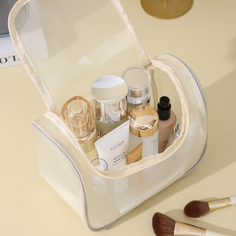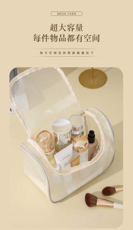 • メッシュポータブル化粧品バッグ、大容量ポータブル化粧品収納バッグ、多機能トイレタリーバッグ、高見えする湾曲バッグ