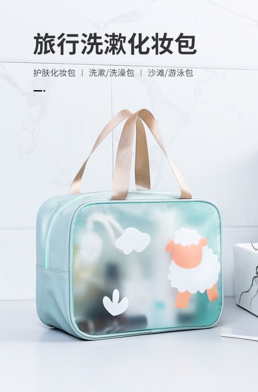 • 蓝绿云上绵羊中号-干湿分离化妆洗漱包