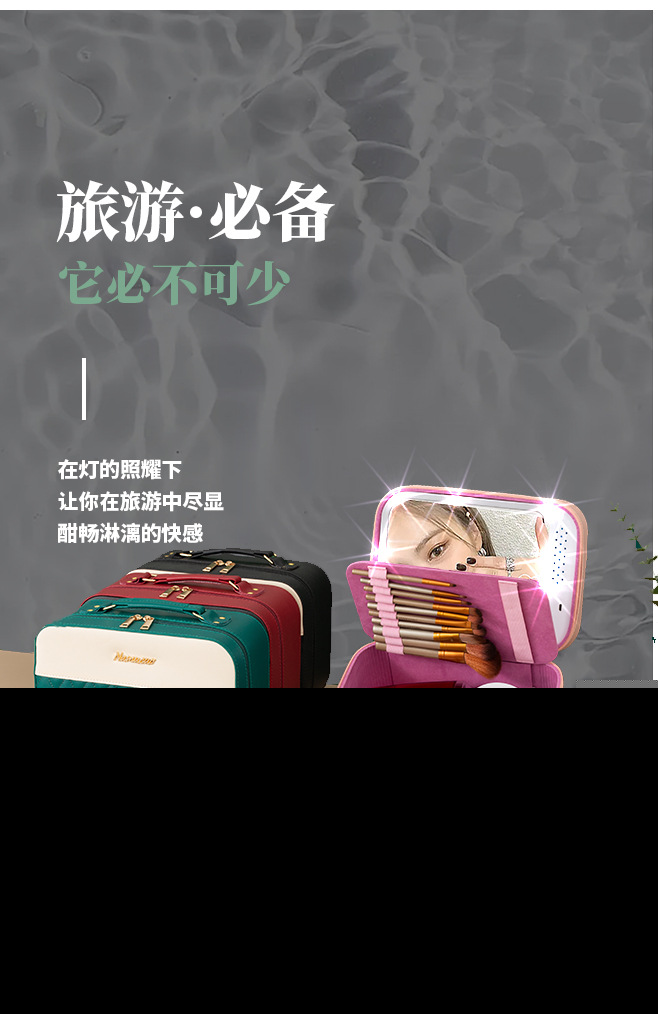 • LEDライト付き化粧品バッグ、ハードスタイル化粧品ケース収納ボックス、旅行卸売大型ミラー
