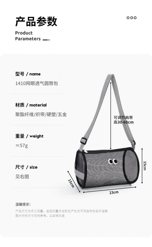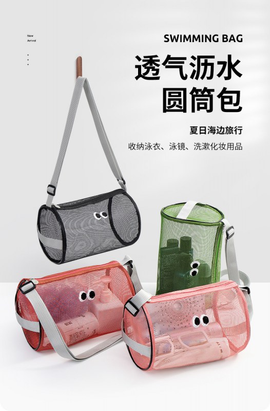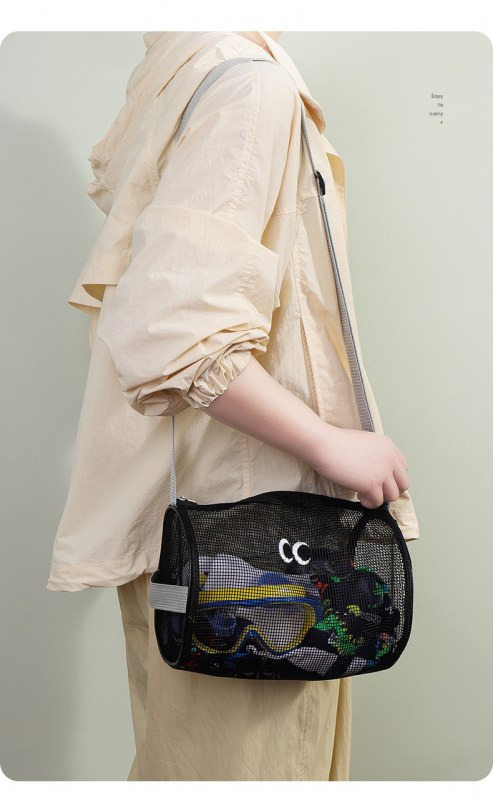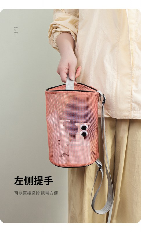 • 大きな目通気性メッシュバケットバッグ旅行ポータブルクロスボディバッグ通気性トイレタリーバッグ大容量トラベルショルダーバッグ