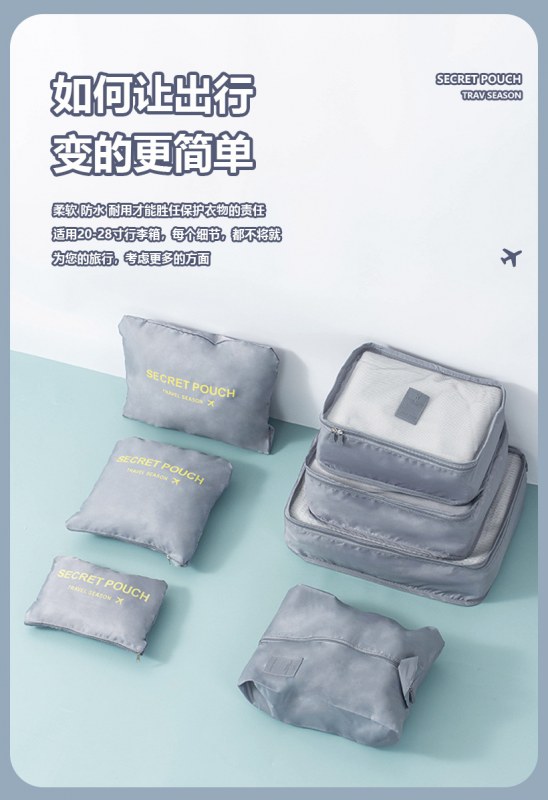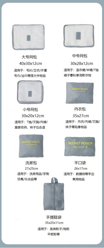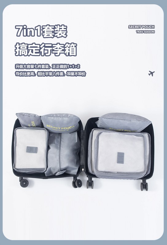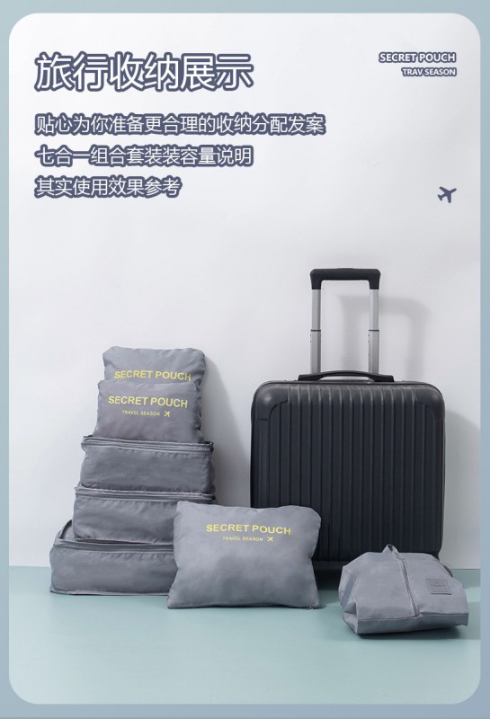 • 旅行用収納バッグ、7ピーススーツ、衣類、靴、荷物収納バッグ、洗面用具や化粧品の再梱包、ポータブルトラベルバッグ