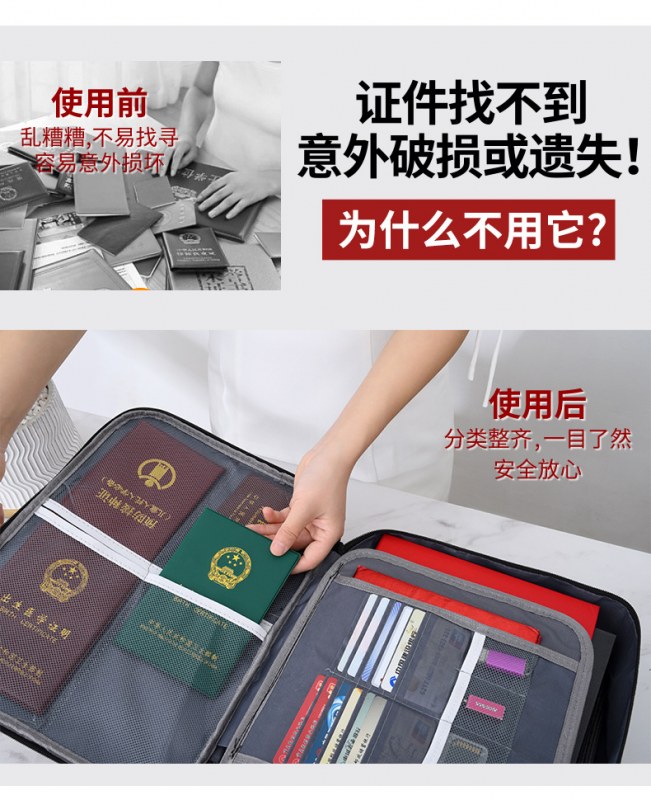 • 耐火性と防水性の旅行書類収納バッグ大容量の家庭用パスポート書類バッグ証明書アーカイブ収納ボックス