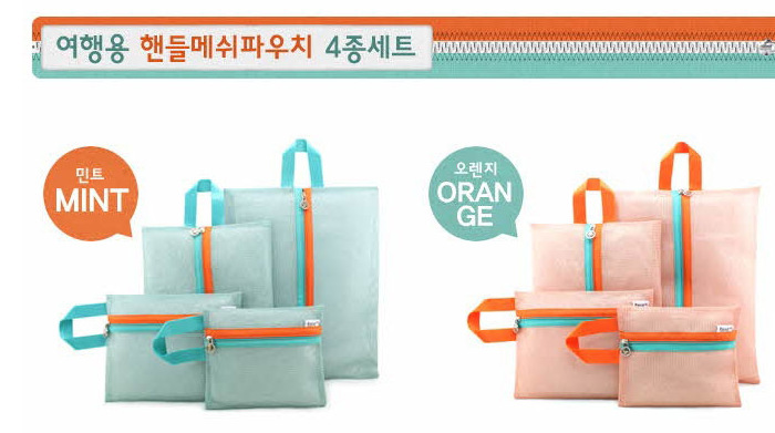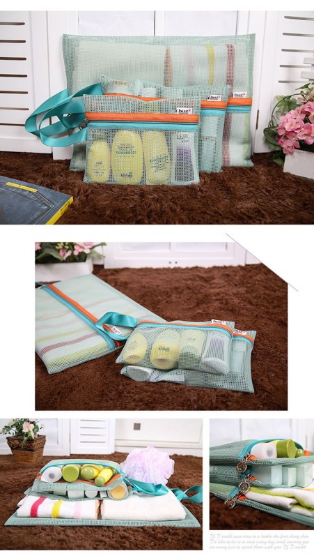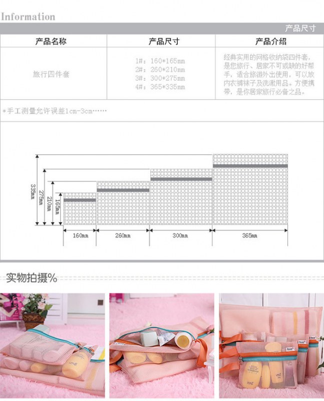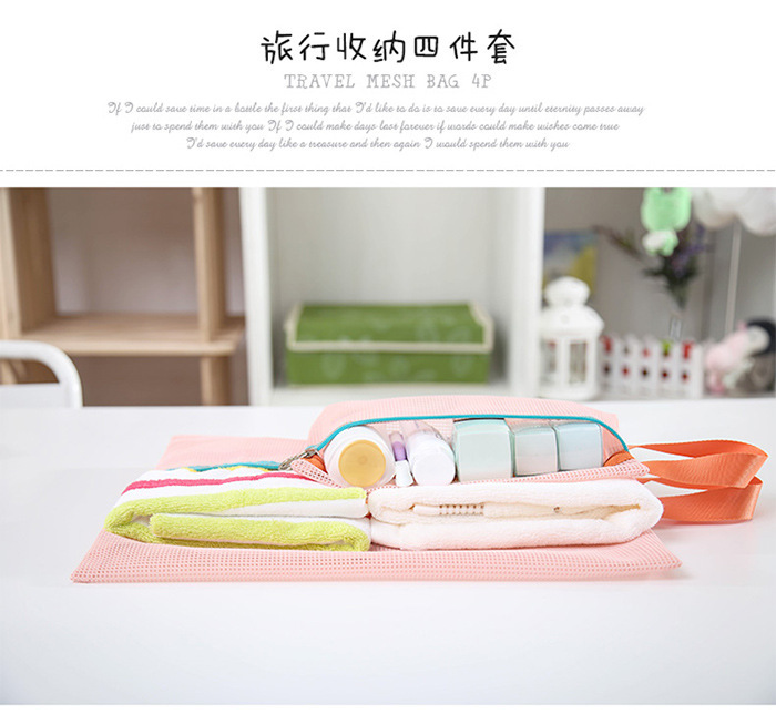 • 韓国版HuaerとJuniorの同じスタイルの厚みのあるメッシュ収納バッグ4点セット旅行衣類整理バッグ
