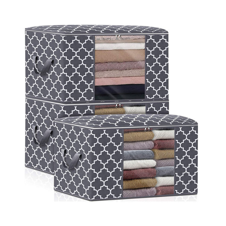 • 梱包袋、整理収納ボックス、防湿・防虫布製衣類用ソフト収納袋、引越しバッグ、コットンやリネンのプリントキルト