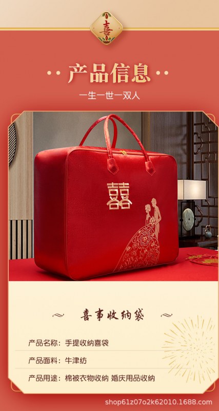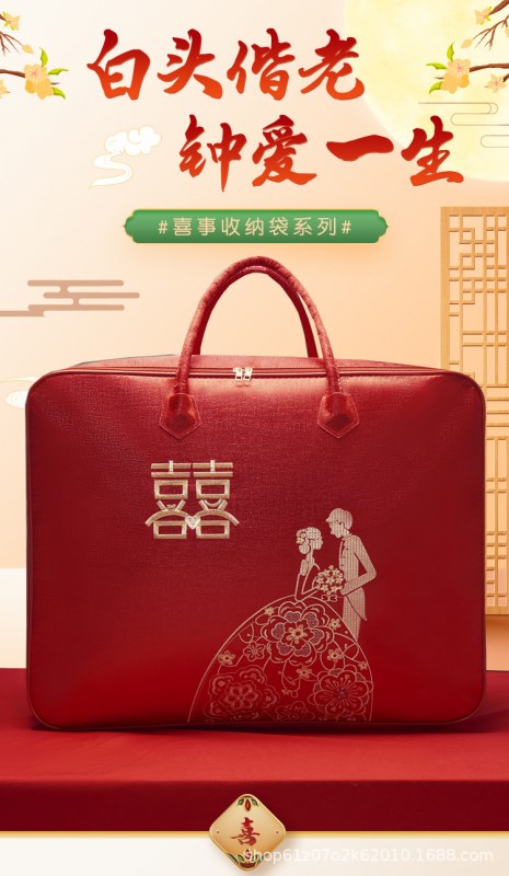 • ウェディングキルト包装袋、ウェディングキルト服大型収納袋、肥厚収納袋、赤いお祝い包装袋