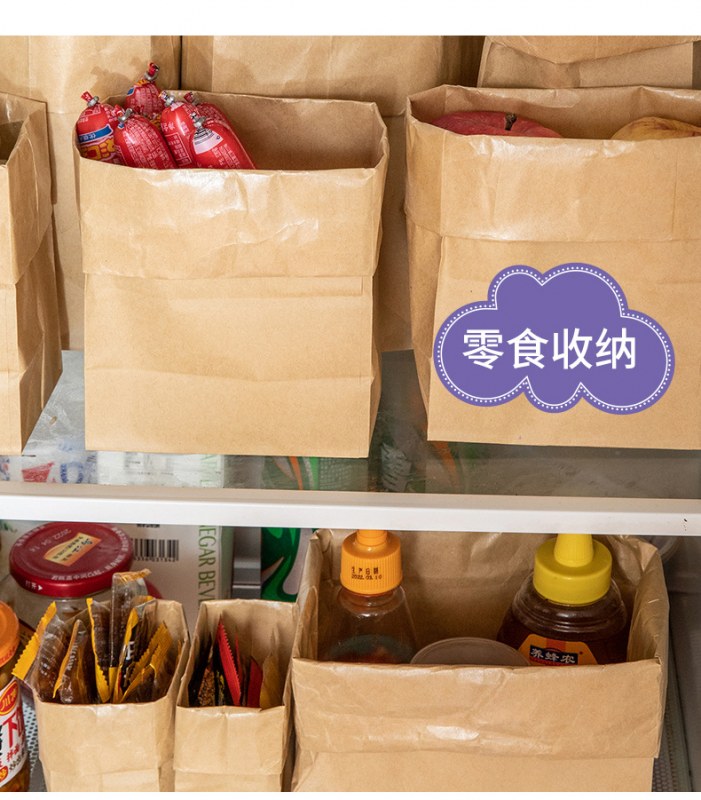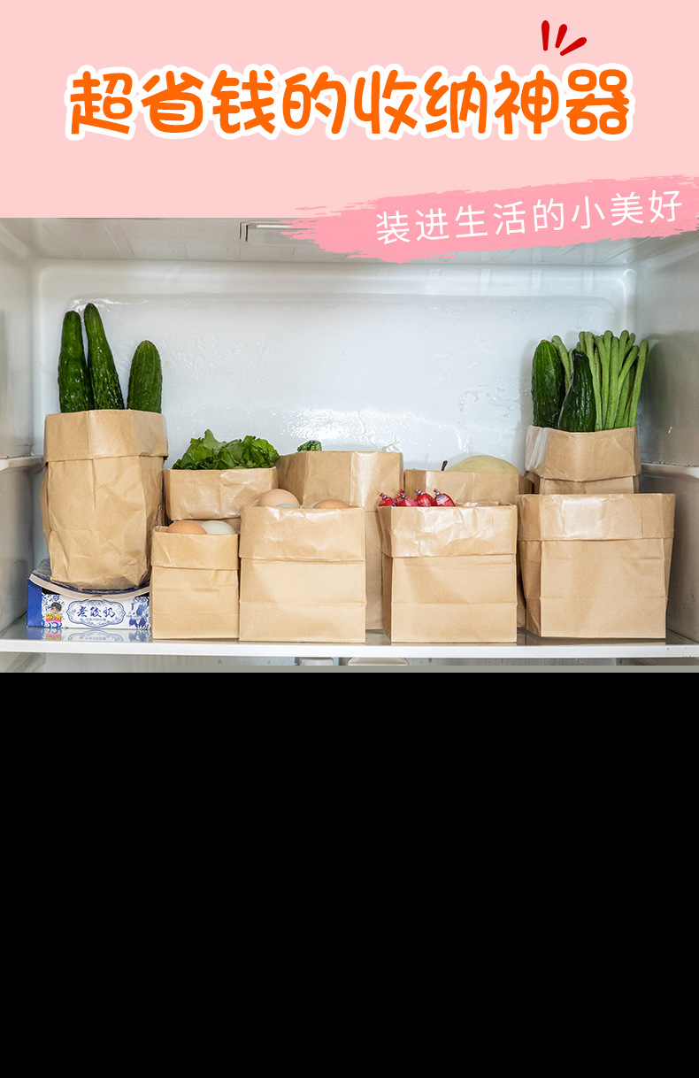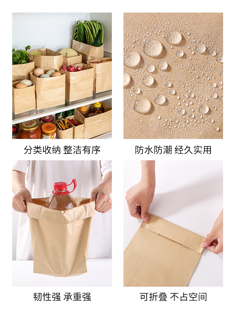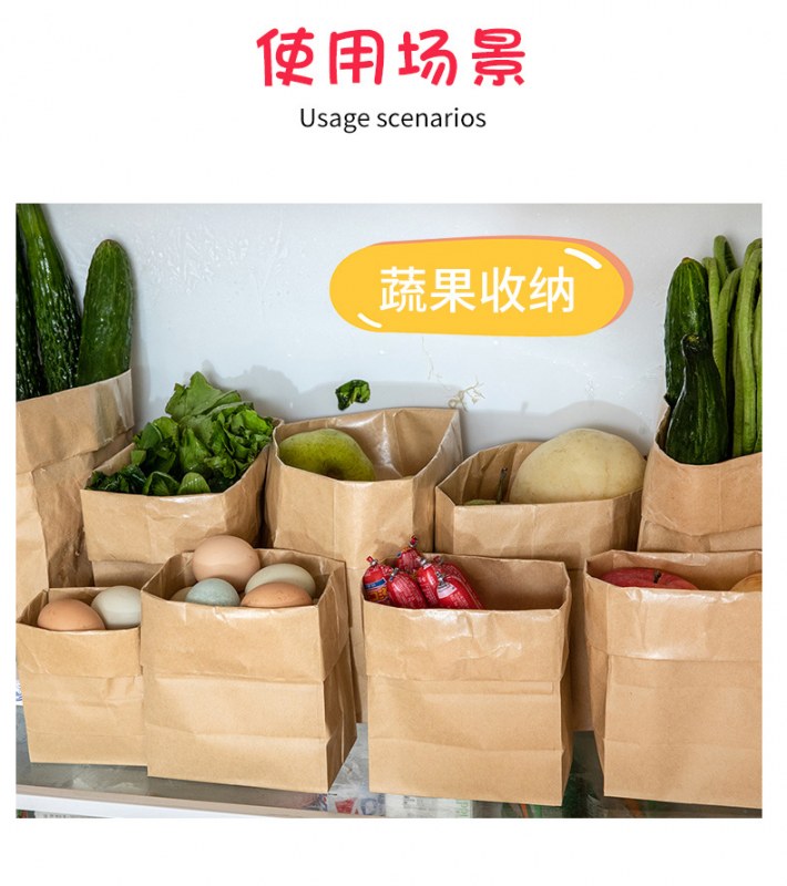 • 肥厚食品グレードのクラフト紙袋包装袋冷蔵庫果物と野菜の保存袋パン耐油包装紙袋防水