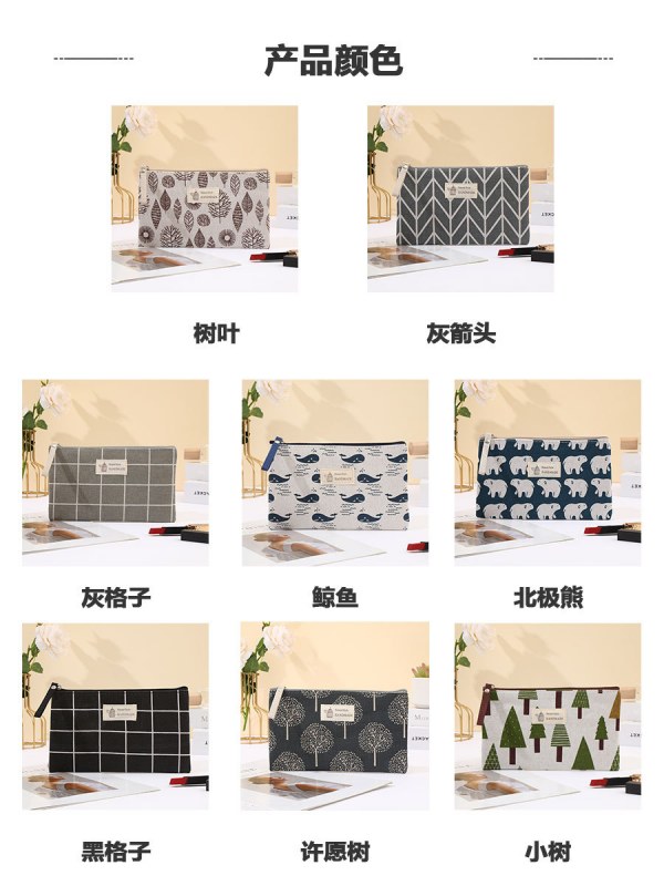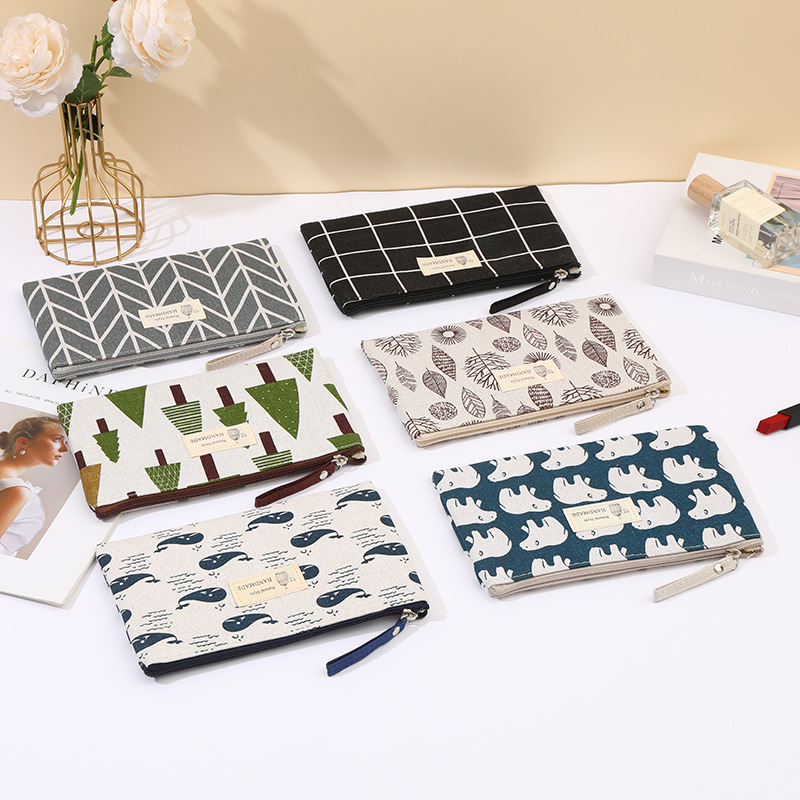 • 卸売綿化粧品バッグ漫画プリント多機能ポータブルコインジッパーペンバッグ収納袋