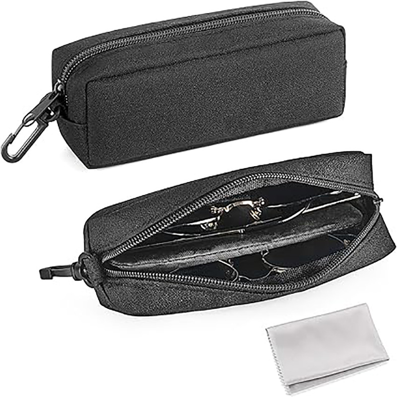 • ダブルメガネケース ソフトメガネケース サングラス トラベルケース ポータブル クリップジッパーとクリーニングクロス付き 女性用 男性用 ハンド用