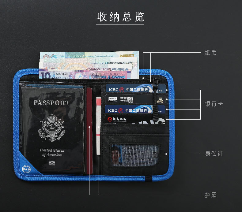• 斜め旅行ストレージポータブル大容量カードホルダー ID パスポートバッグスポット卸売