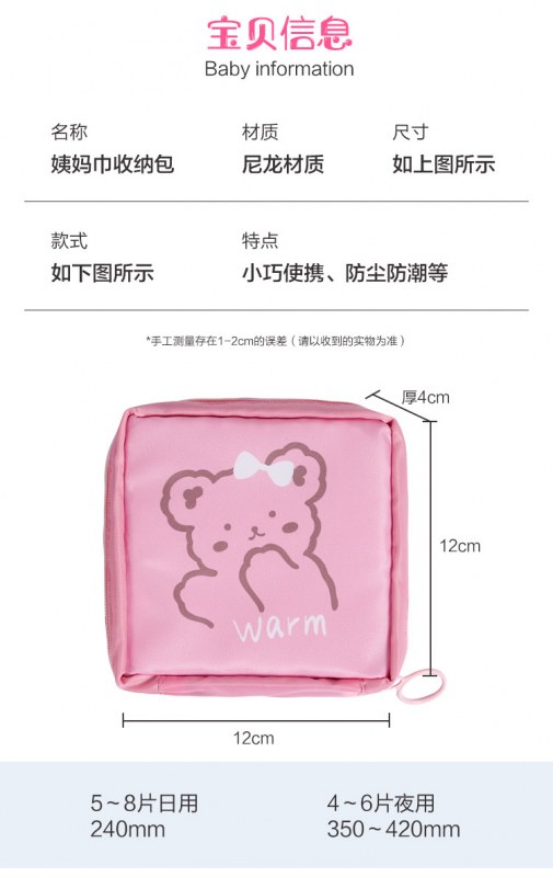 • 女性のポータブル月経期間コットンパッド収納袋叔母のタオルバッグイン衛生叔母のタオル収納袋