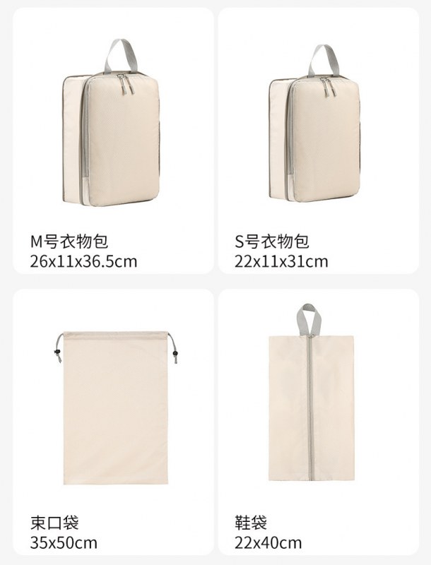 • 米色四件套+束口袋+鞋袋【压缩款6件】