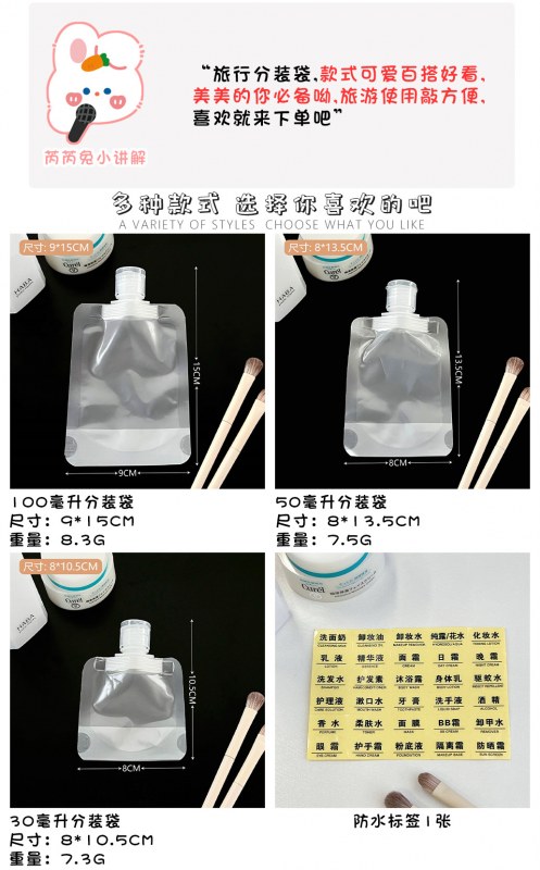 • トラベル詰め替えバッグ化粧品ローションシャワージェルシャンプーサンプルポータブル小型洗顔料使い捨て詰め替えボトル
