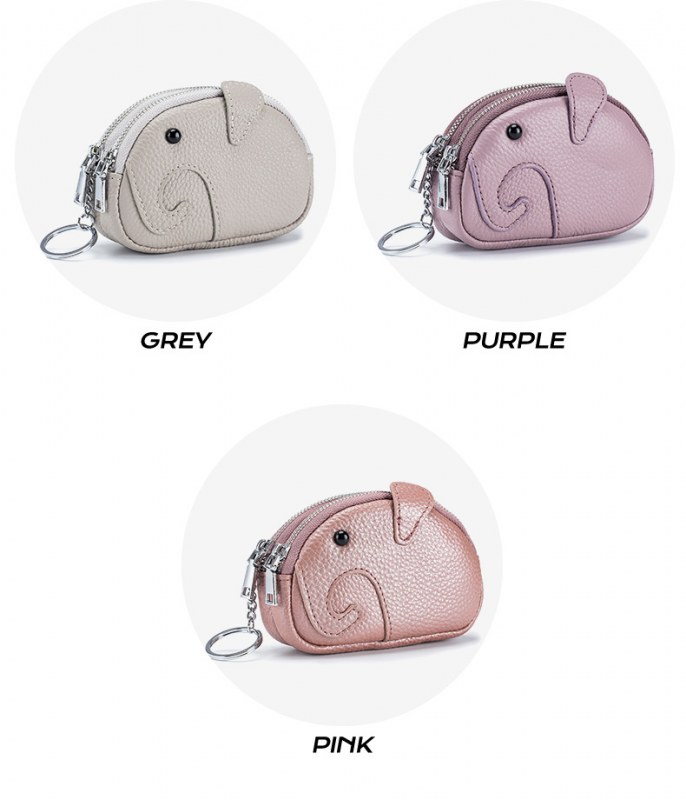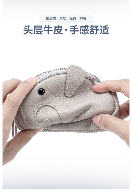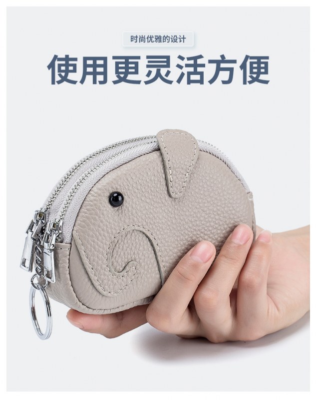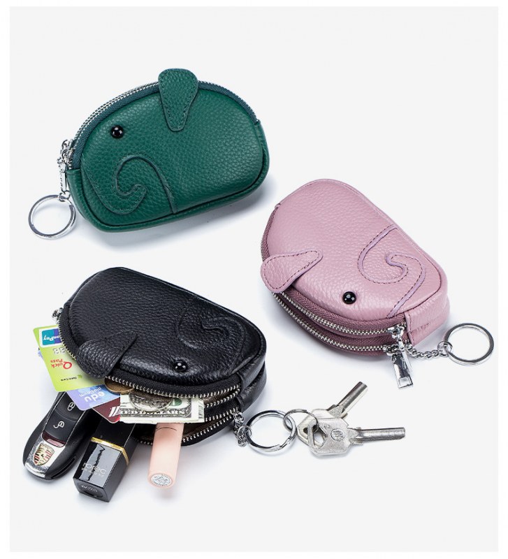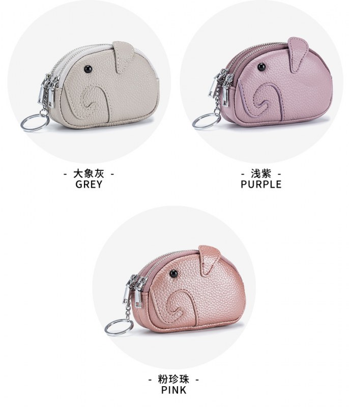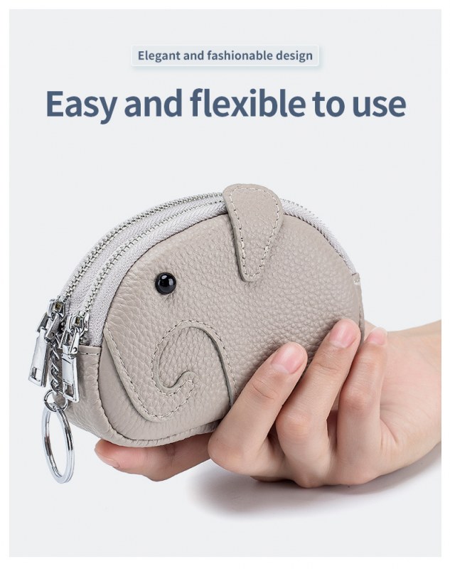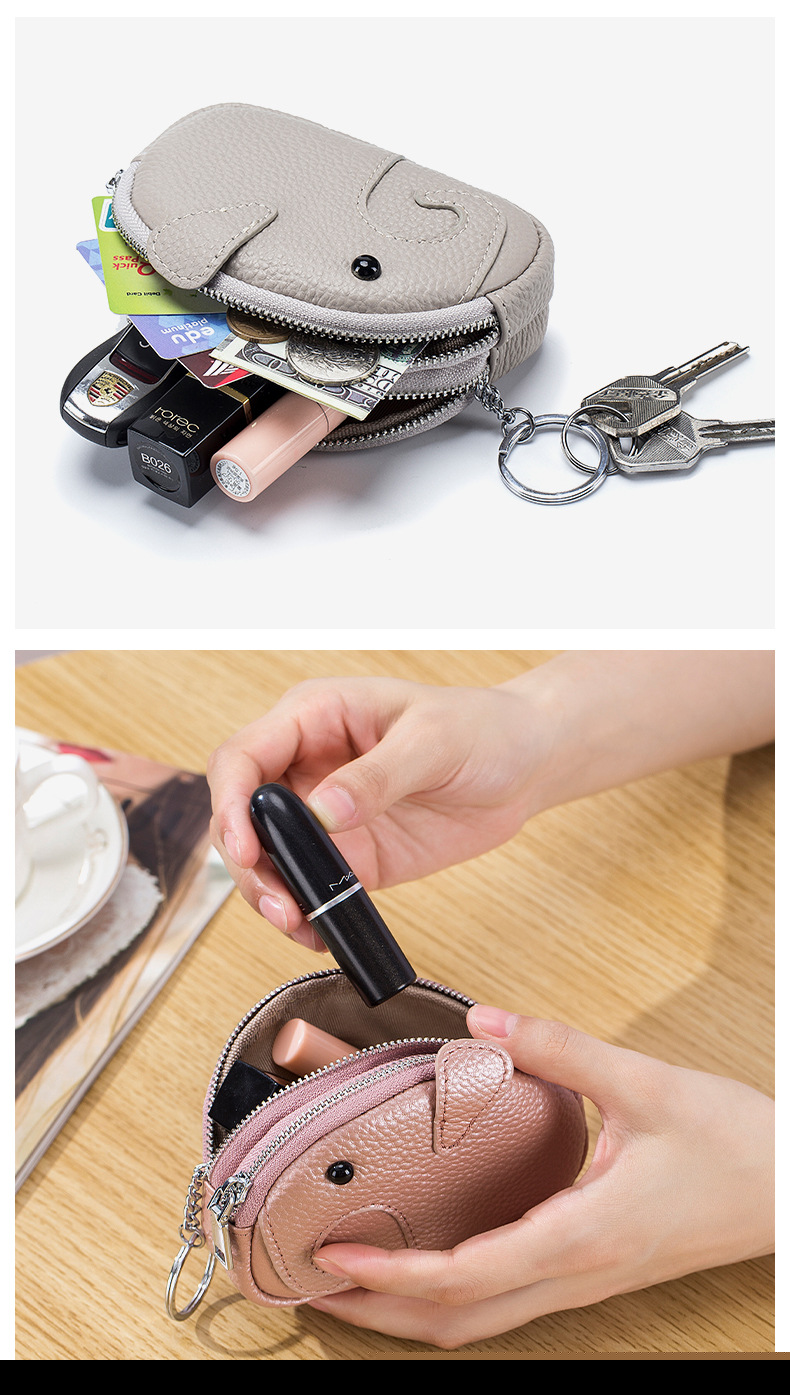 • 新しいダブルジッパーコインバッグ収納袋日本のかわいい漫画象ミニ小銭入れ女性のための本革