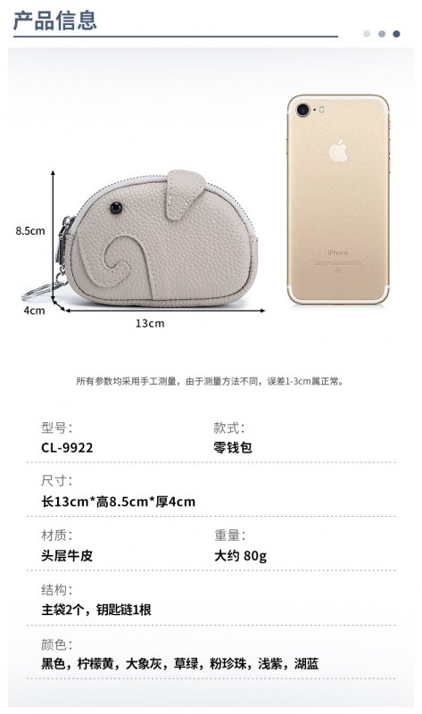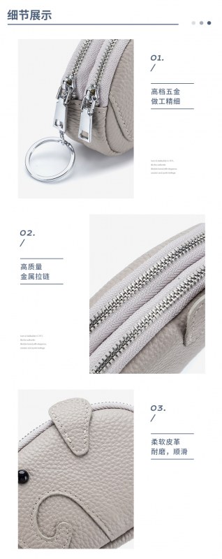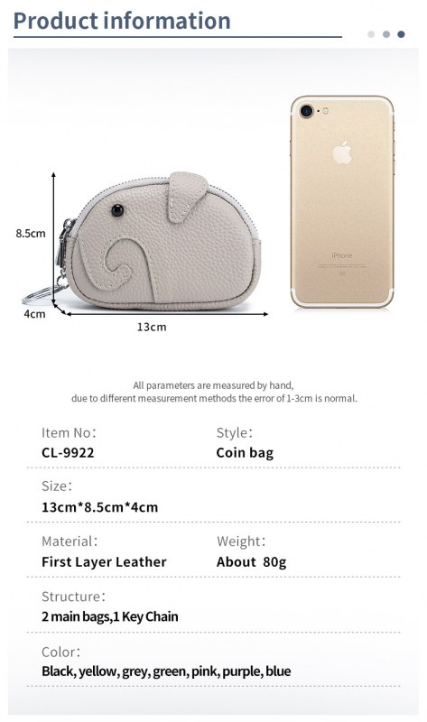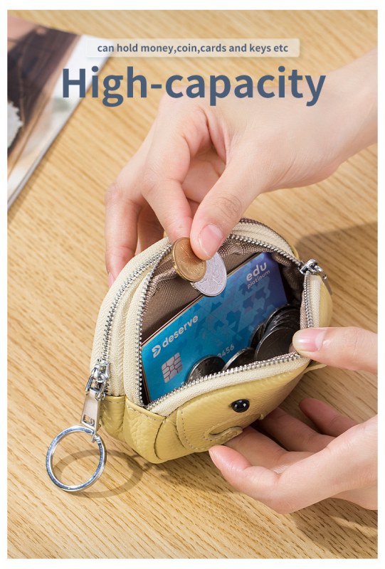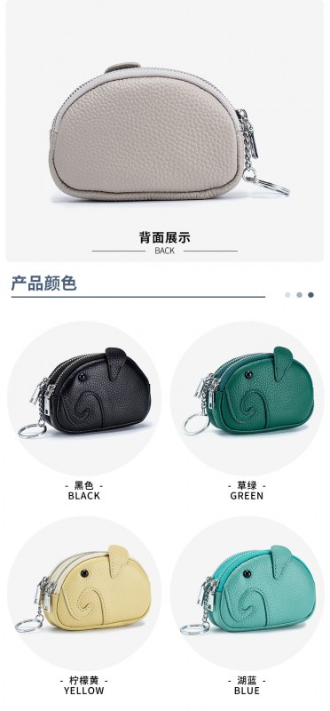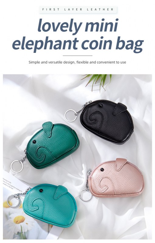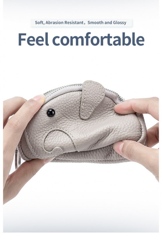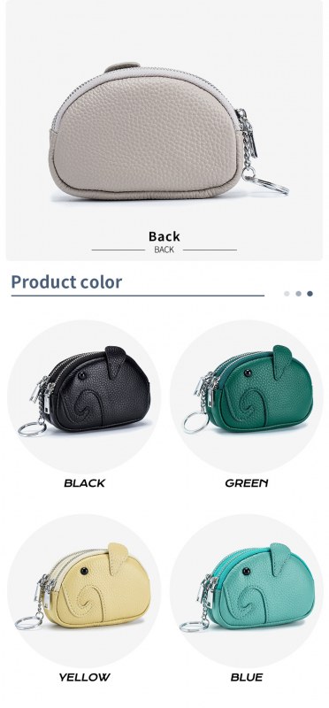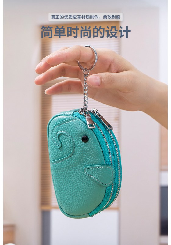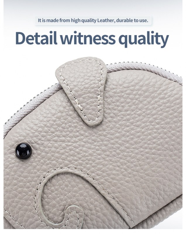 • 新しいダブルジッパーコインバッグ収納袋日本のかわいい漫画象ミニ小銭入れ女性のための本革