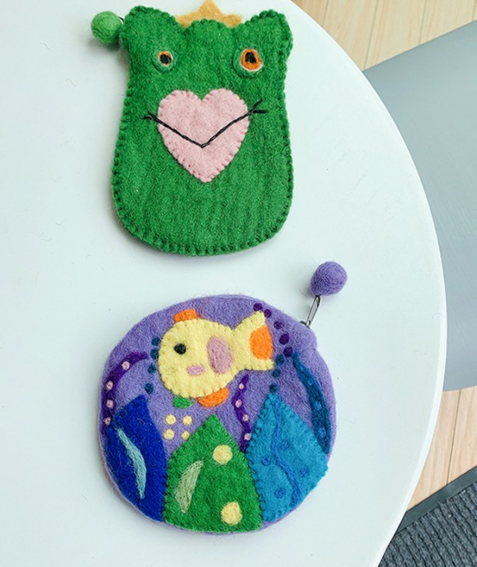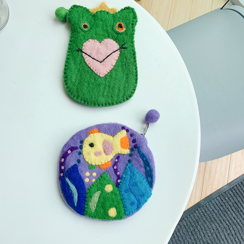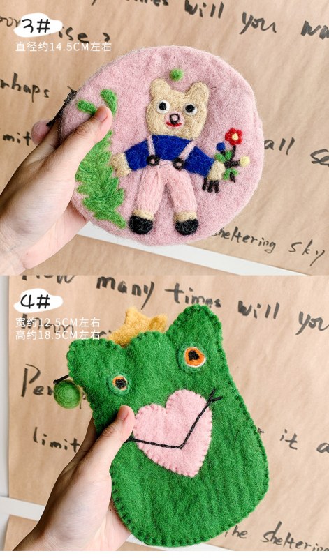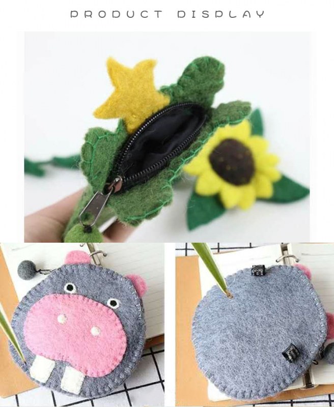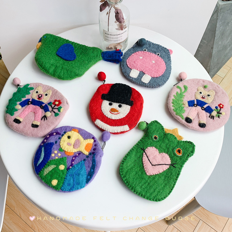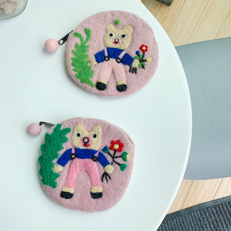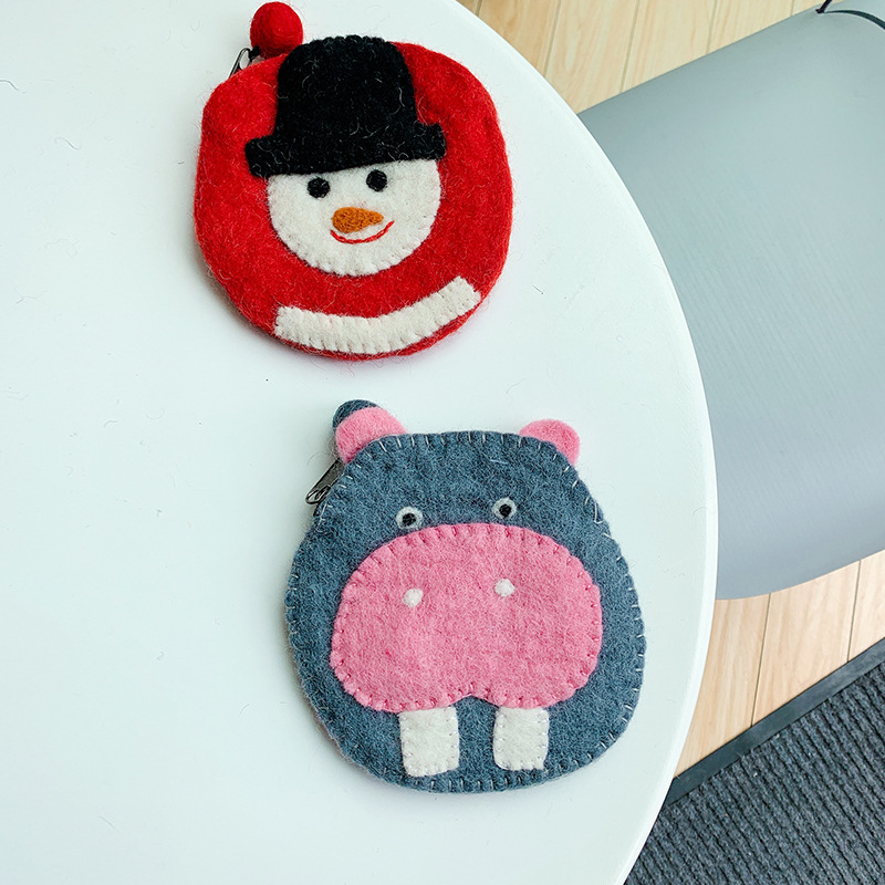 • 日本と韓国スタイルのかわいい動物ウールフェルト小銭入れ小さなカードコインバッグ立体手作りハンギングバッグ