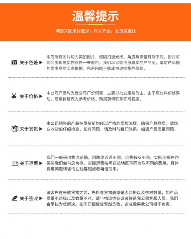 弊社が取り扱っている商品は、自社の海外工場から直送しています。ご入金が確認でき次第に商品を発送いたします。ご注文殺到時や、ご注文数量、種類が多い場合は、発送が遅れる可能性がございます、ご了承ください。ご注文商品の中に在庫がない商品につき、その商品のみキャンセルさせていただき、在庫のある商品のみをまとめて発送させていただきます。また、ご注文後の商品追加や、内容変更、同梱などはお受付しておりません。