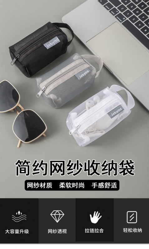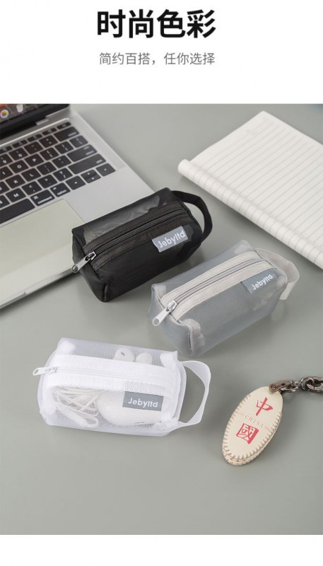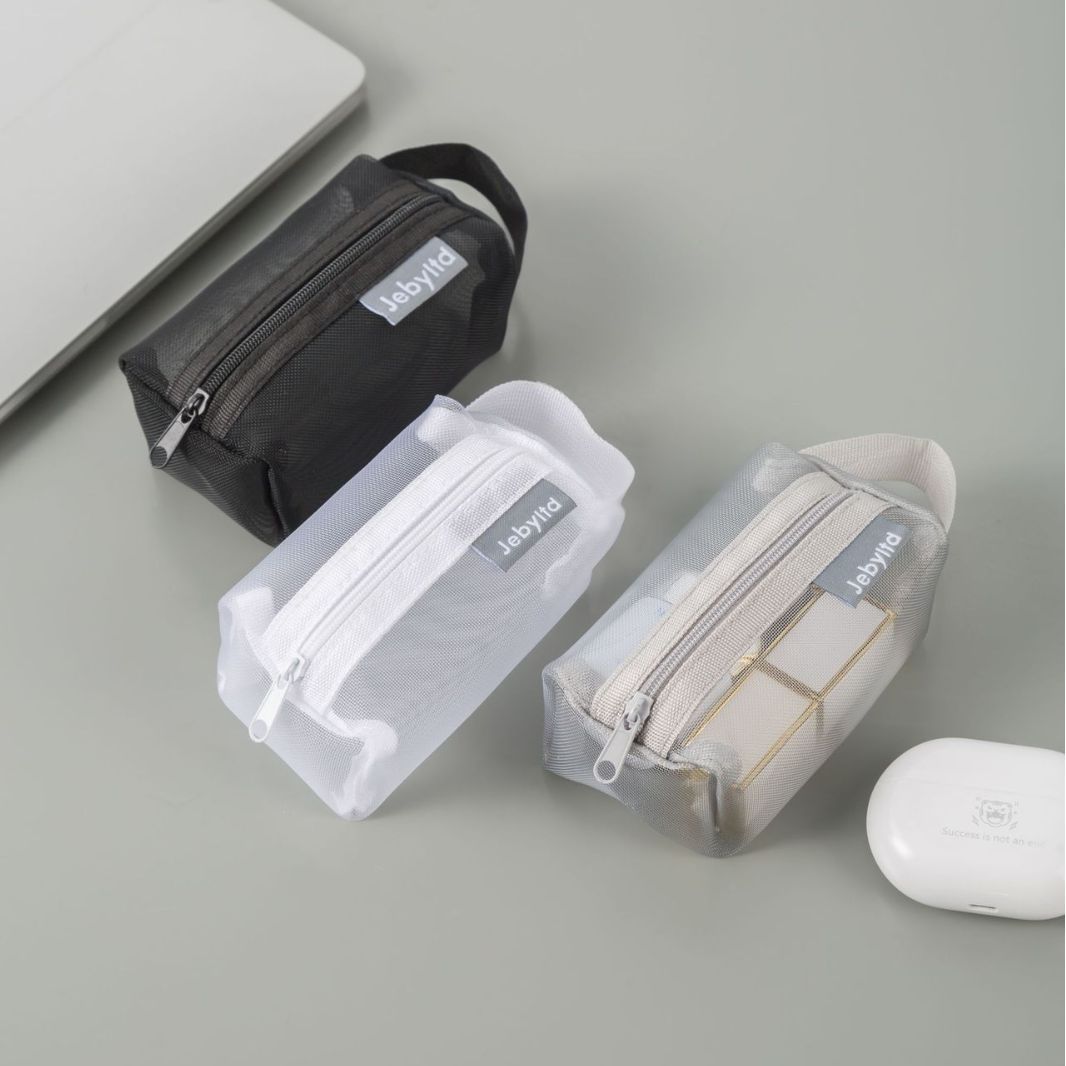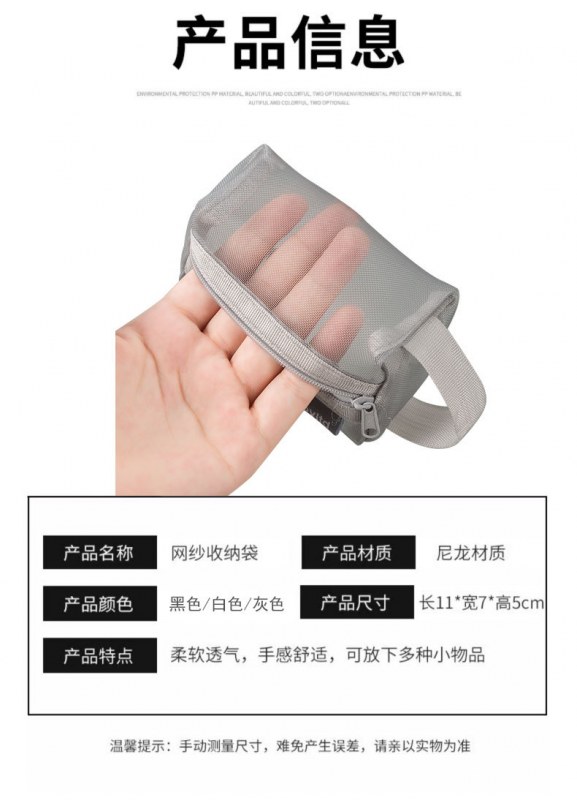 • シンプルなナイロン立体スクエアメッシュ小銭入れ大容量キーバッグカードバッグコインバッグ透明収納袋