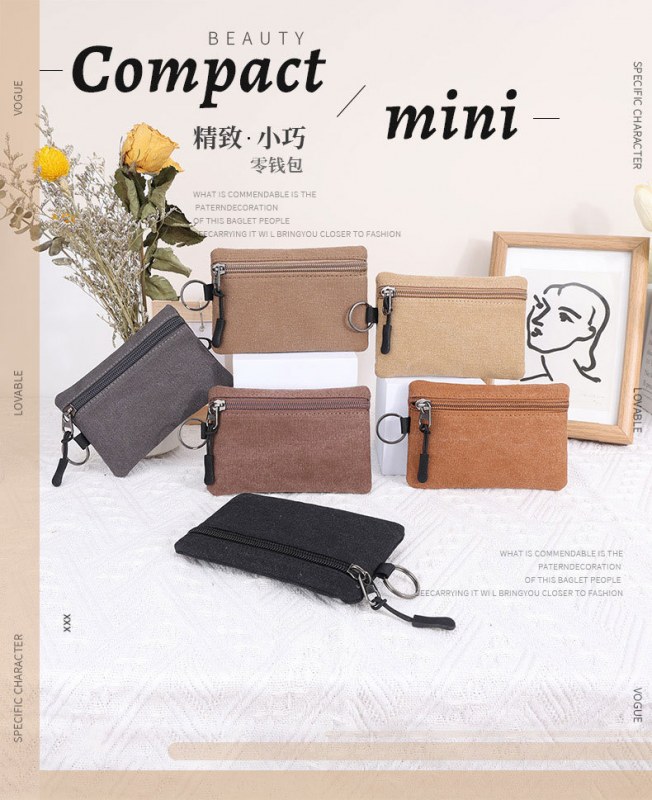 • キャンバス製の小さな財布、小銭入れ、ポータブル小さなバッグ、ストラップ、バックル、レディース財布、コインキーカードバッグ、収納袋