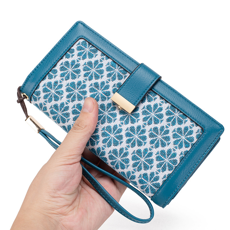 • レディースロングRFIDウォレットパスポートバッグマルチカラーパターン小銭入れスクエアバックルクラッチバッグ