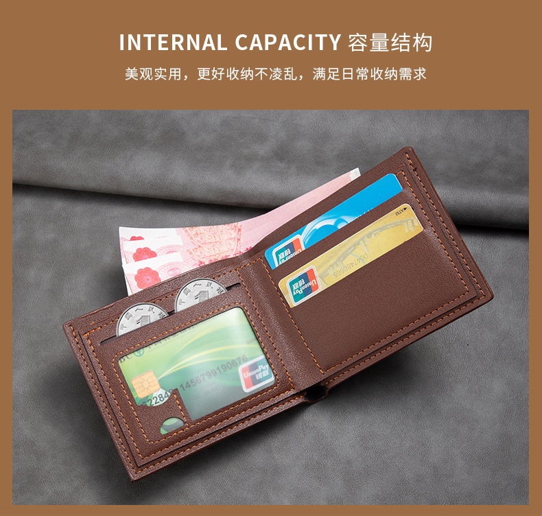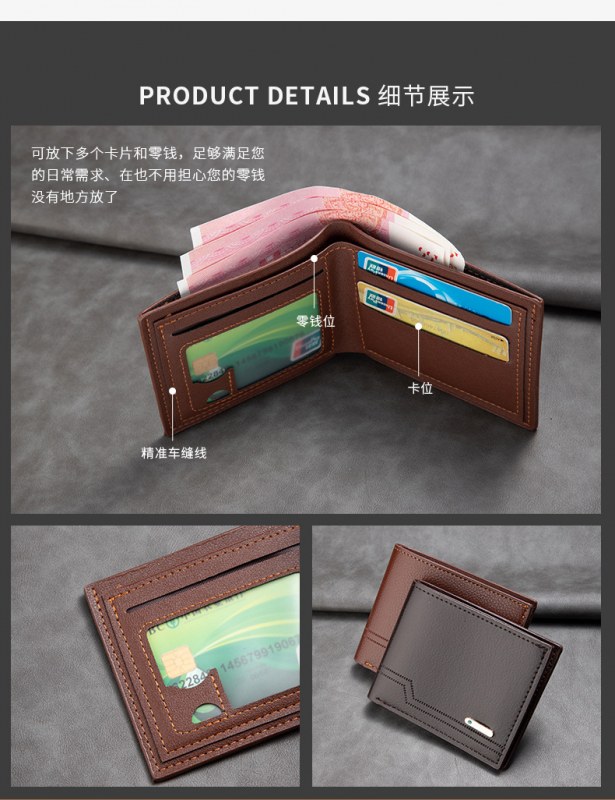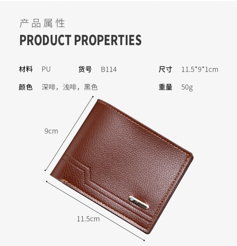 • メンズ財布、ファッショナブルでカジュアル、ペブルドソフトレザーウォレット、マルチカードスロット、大容量、ショートスモールウォレット