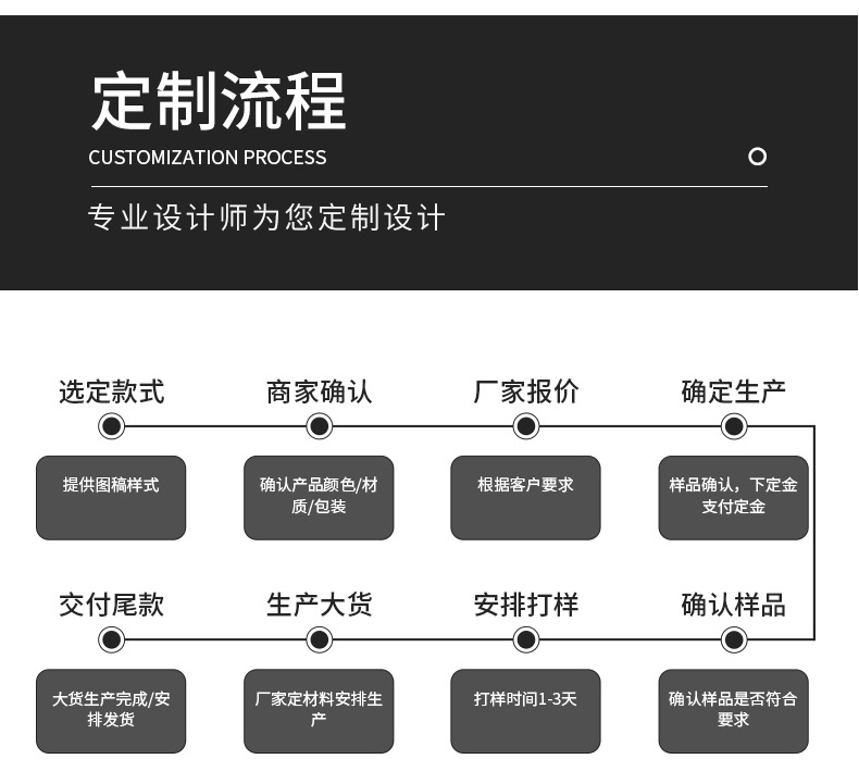 弊社が取り扱っている商品は、自社の海外工場から直送しています。ご入金が確認でき次第に商品を発送いたします。ご注文殺到時や、ご注文数量、種類が多い場合は、発送が遅れる可能性がございます、ご了承ください。ご注文商品の中に在庫がない商品につき、その商品のみキャンセルさせていただき、在庫のある商品のみをまとめて発送させていただきます。また、ご注文後の商品追加や、内容変更、同梱などはお受付しておりません。
