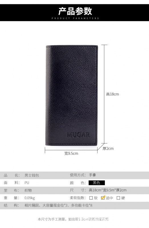 • 新しい韓国風ビジネスメンズ無地長財布ウォレットマルチカードスロットウォレット