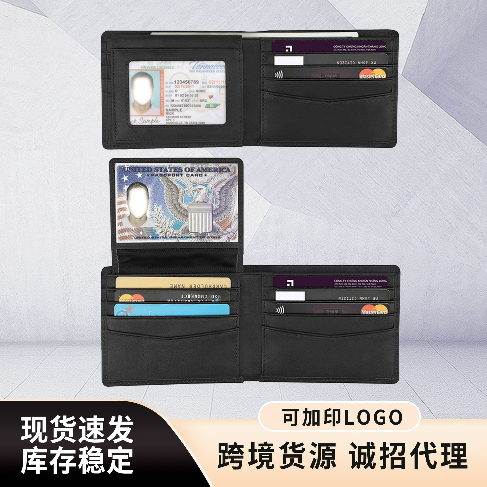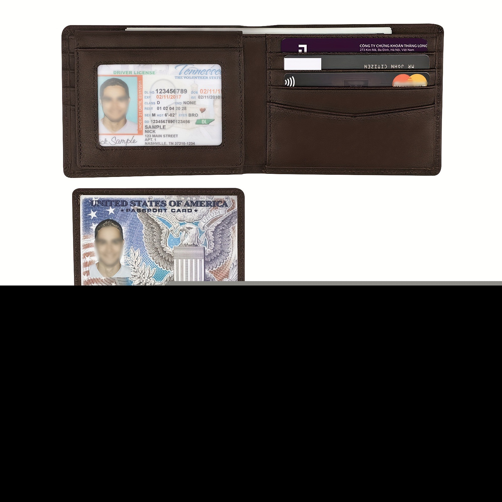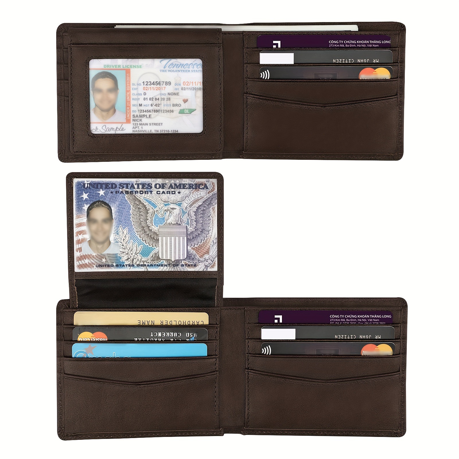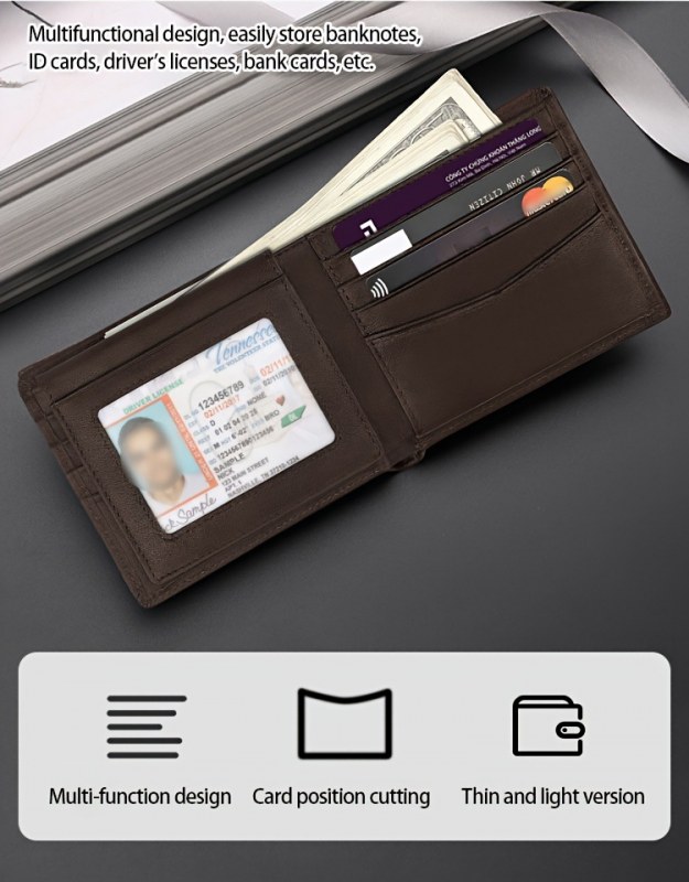 • シンプルなレザーウォレットウォレット、複数のカードスロットを備えたRFID盗難防止ブラシショート三つ折りメンズウォレット