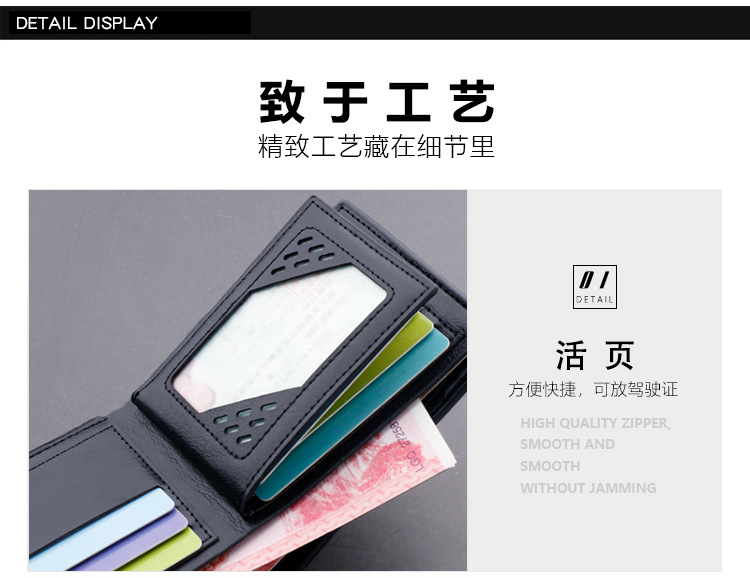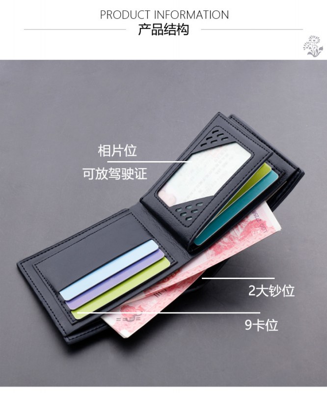 • 財布メンズショートヨーロッパとアメリカン財布メンズマルチカードスロットカードホルダーファッションソリッドカラー財布横型スタイルは運転免許証を収納できます