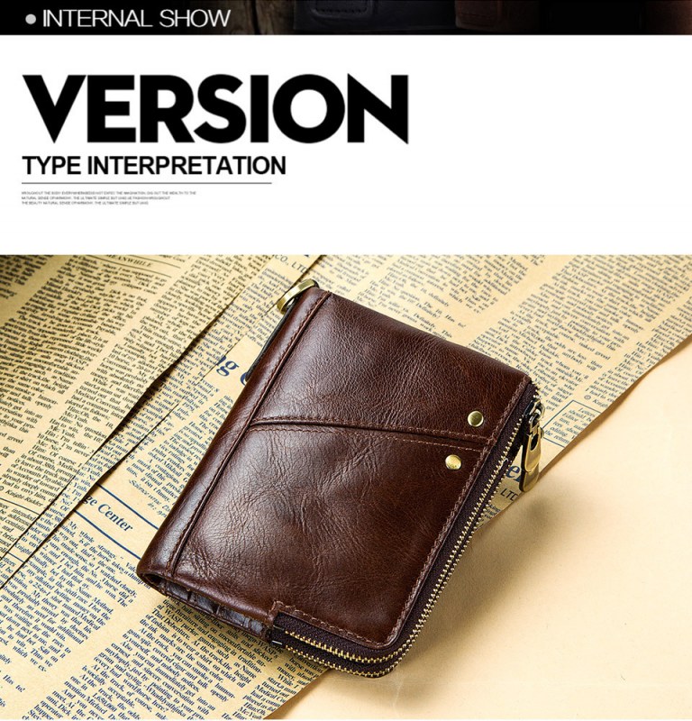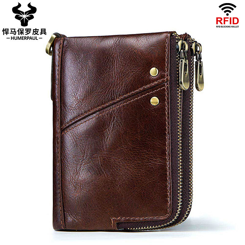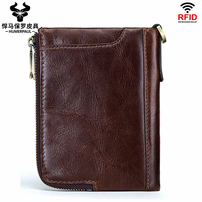 • RFID 本革メンズ財布ショートダブルジッパー縦型財布ファッションカジュアル小銭入れ