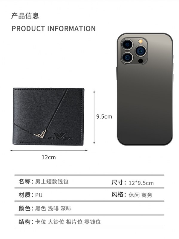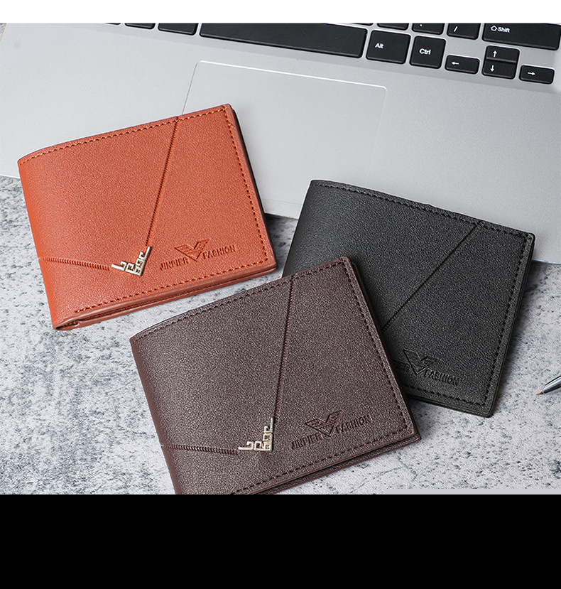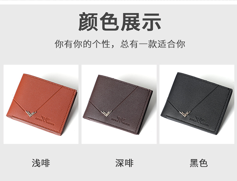 • 新しいメンズ財布、メンズショートウォレット、若い男性のシンプルでファッショナブルなマルチカードスロットライチパターンの水平スタイルのスプライシングウォレット