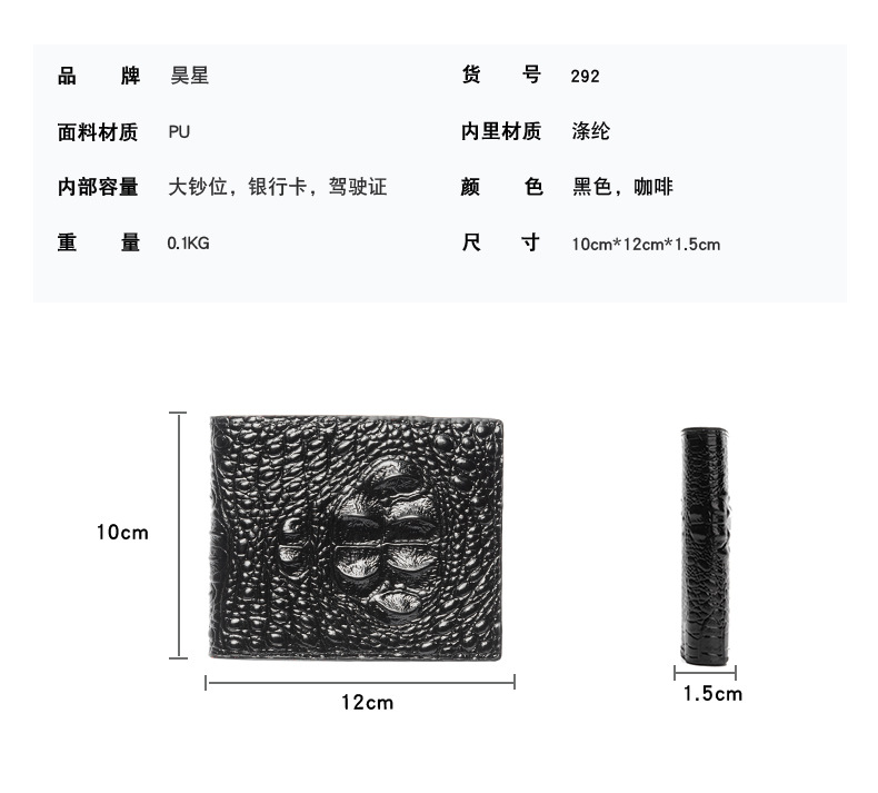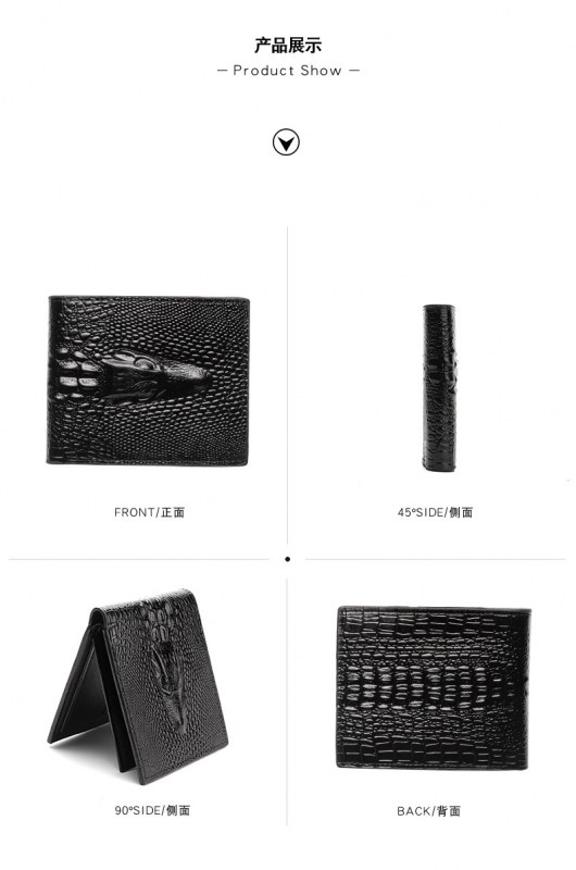 • メンズ財布ショートクロコダイル柄ビジネス横型多機能紙幣財布IDバッグ