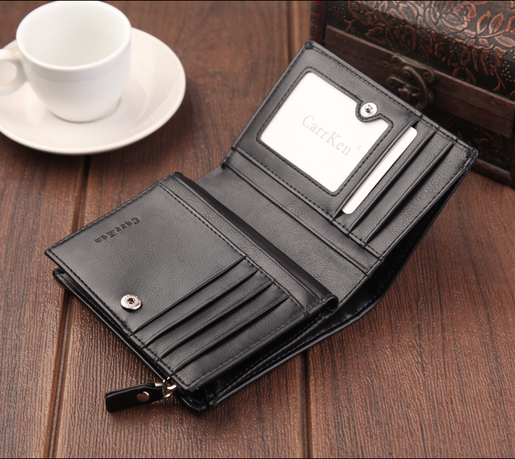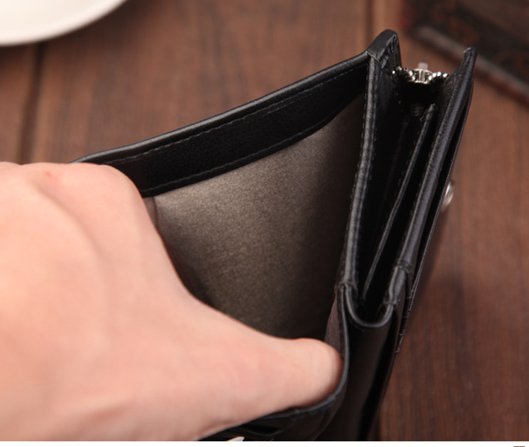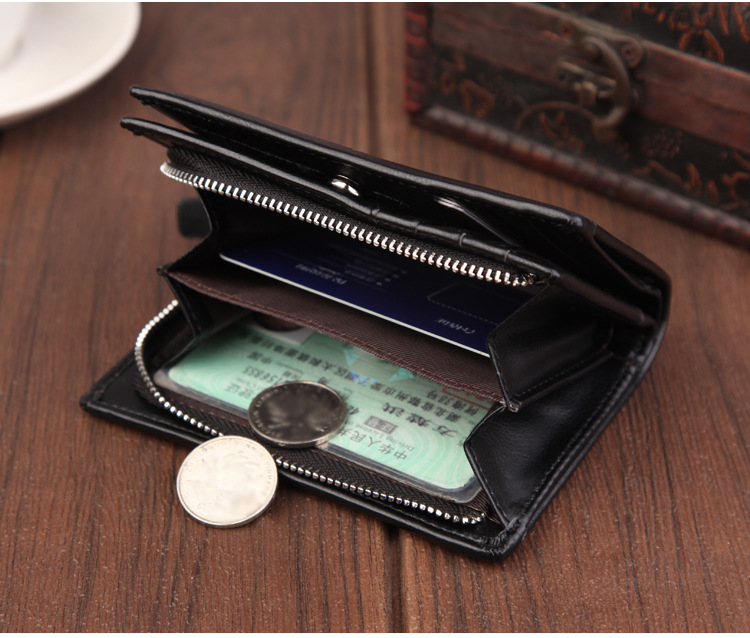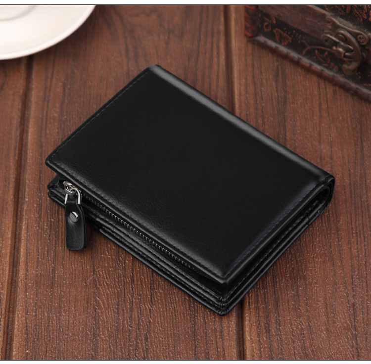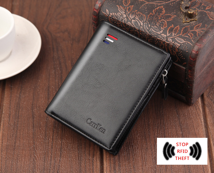 • 消磁財布メンズショート PU レザー財布ジッパーレトロワックスオイルユース垂直 RFID 盗難防止ブラシ