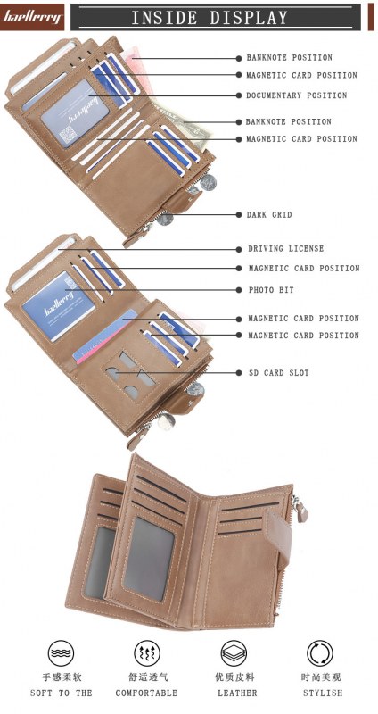 • ショートウォレット ファスナー付き 多機能財布 マルチカード入れ 小銭入れ メンズ ギフト