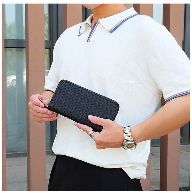 • シンプルな織り柄財布 メンズ財布 ロングユース ファスナーウォレット 織り柄 ハンドバッグ トレンド