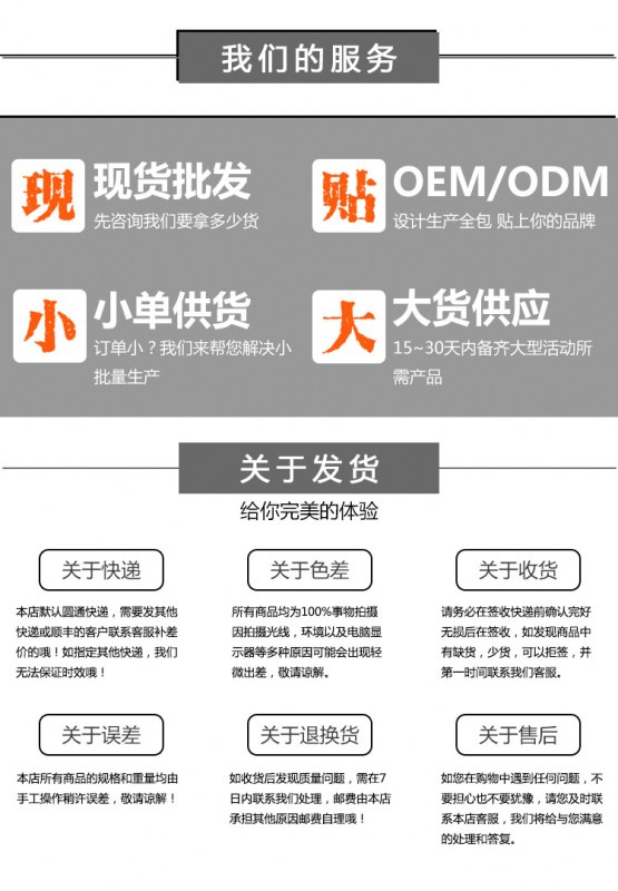 弊社が取り扱っている商品は、自社の海外工場から直送しています。ご入金が確認でき次第に商品を発送いたします。ご注文殺到時や、ご注文数量、種類が多い場合は、発送が遅れる可能性がございます、ご了承ください。ご注文商品の中に在庫がない商品につき、その商品のみキャンセルさせていただき、在庫のある商品のみをまとめて発送させていただきます。また、ご注文後の商品追加や、内容変更、同梱などはお受付しておりません。