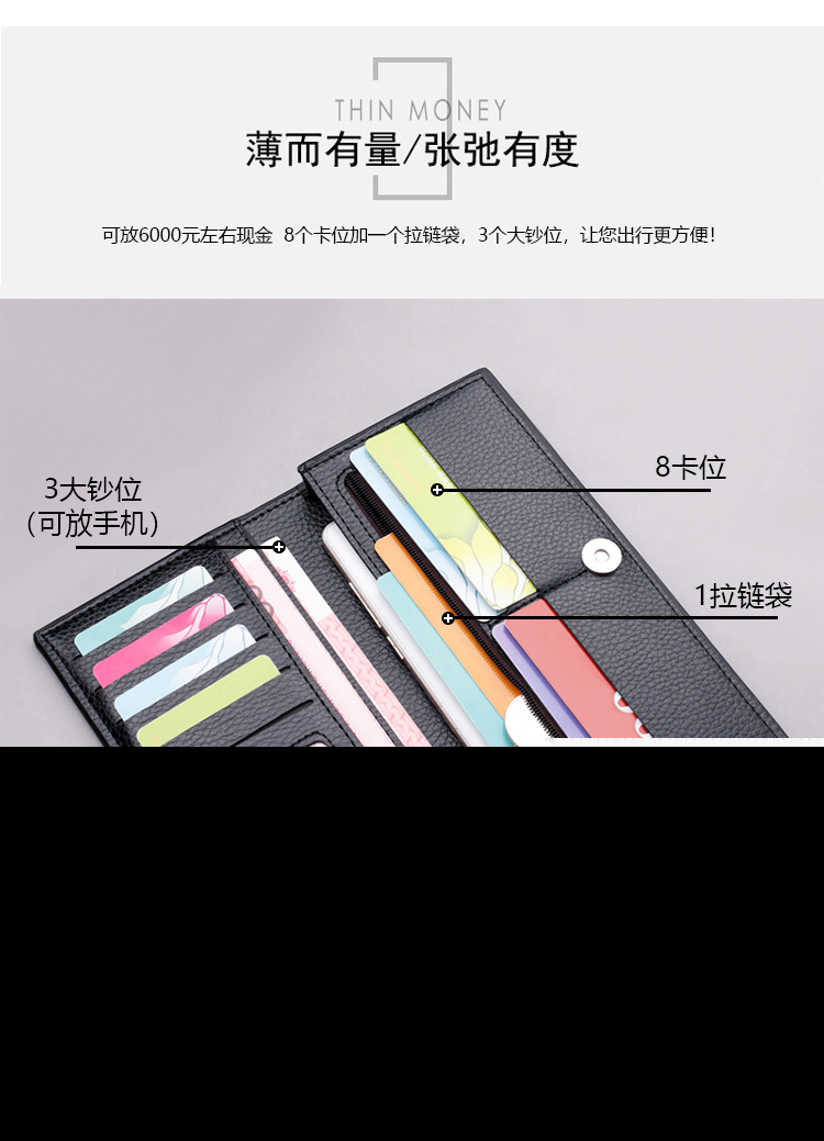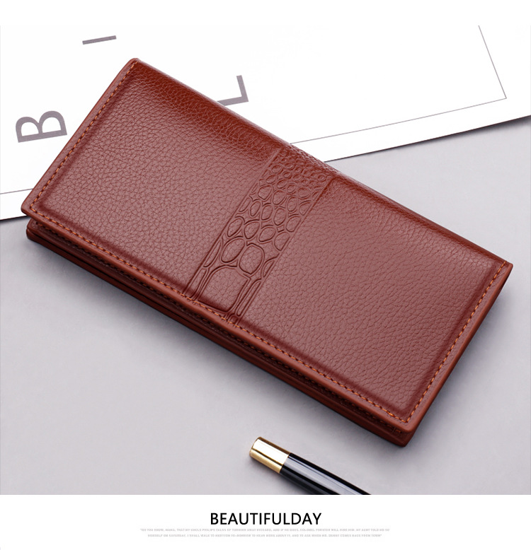 • メンズ用多機能財布、トレンディなブランドロングジッパー、トレンディ、ファッショナブルでパーソナライズされた、大容量ボタン、若者向け手持ちエンボス加工