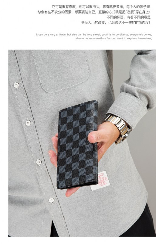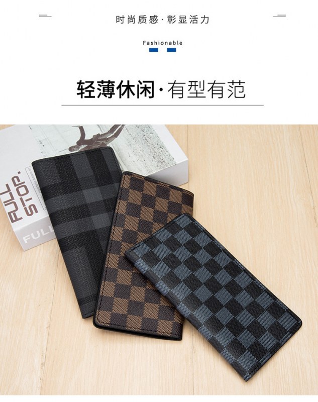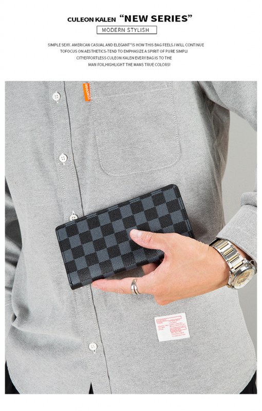 • 新しい長財布メンズ ビジネス ファッション財布市松模様のトレンド財布マルチカード スロット カード ホルダー