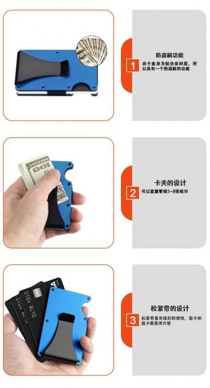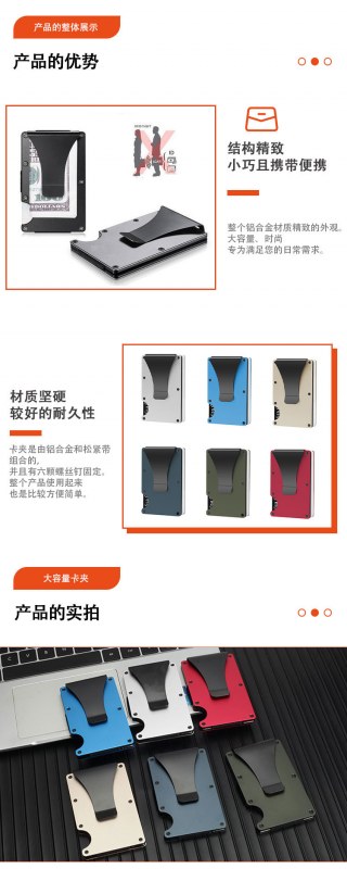 • 超薄型ミニマリスト財布、アルミニウム合金 RFID 盗難防止クレジットカードホルダー、メンズメタルコンパクト財布