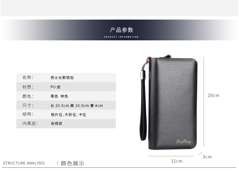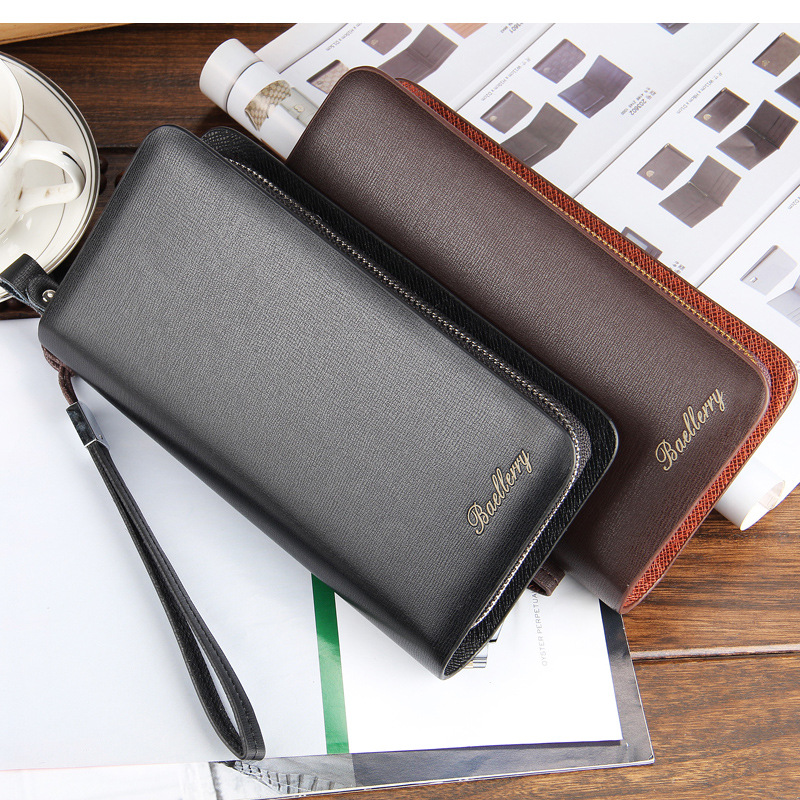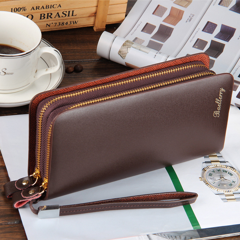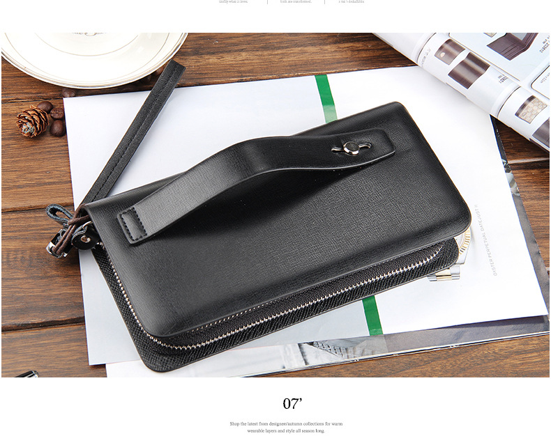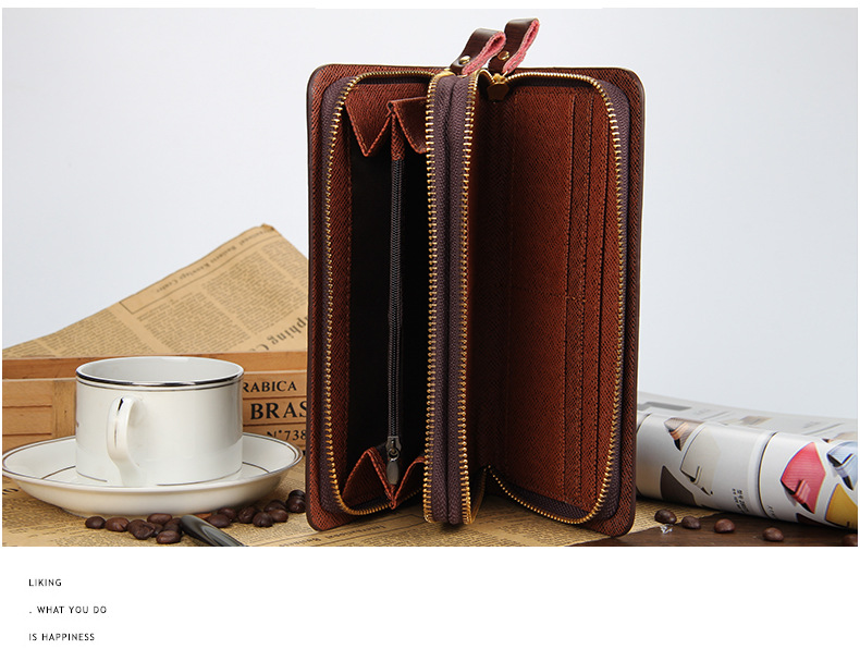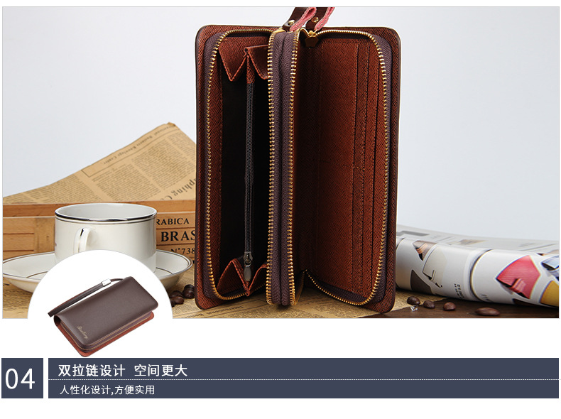• 新しい財布カジュアルクラッチバッグメンズクラッチロング多機能ダブルジッパー携帯電話バッグ