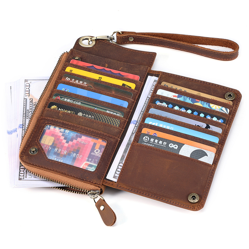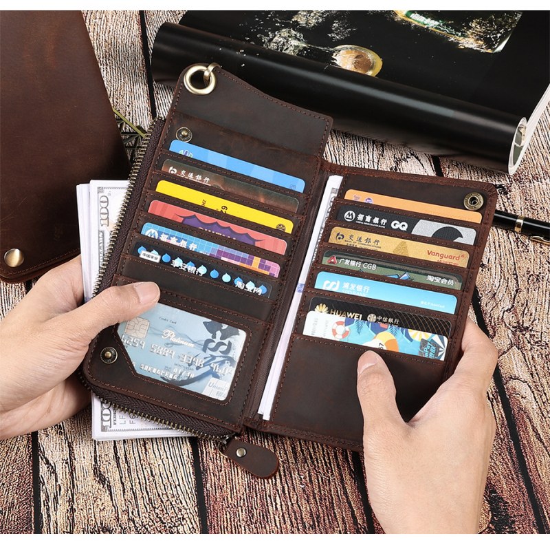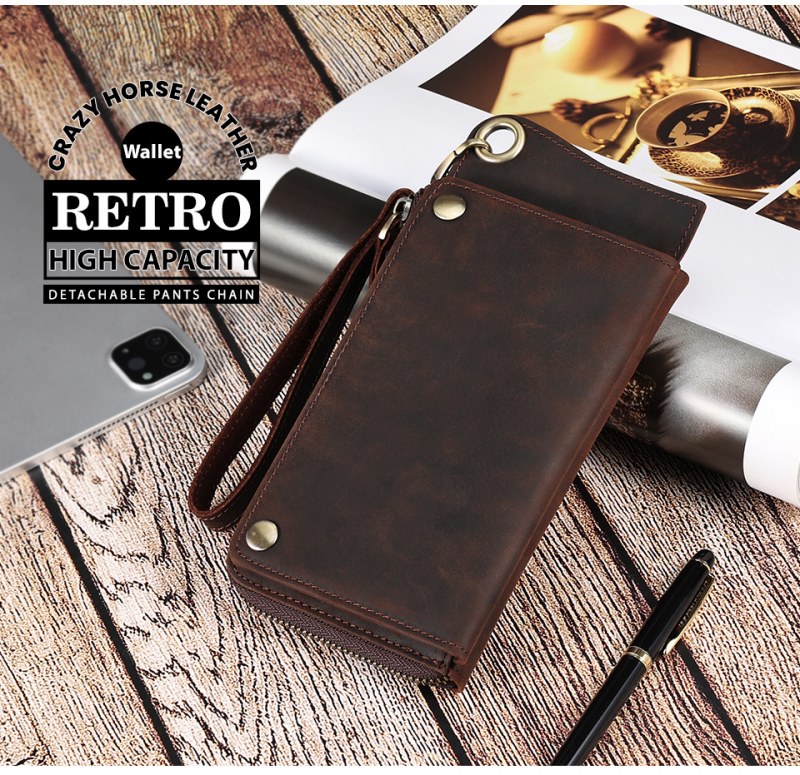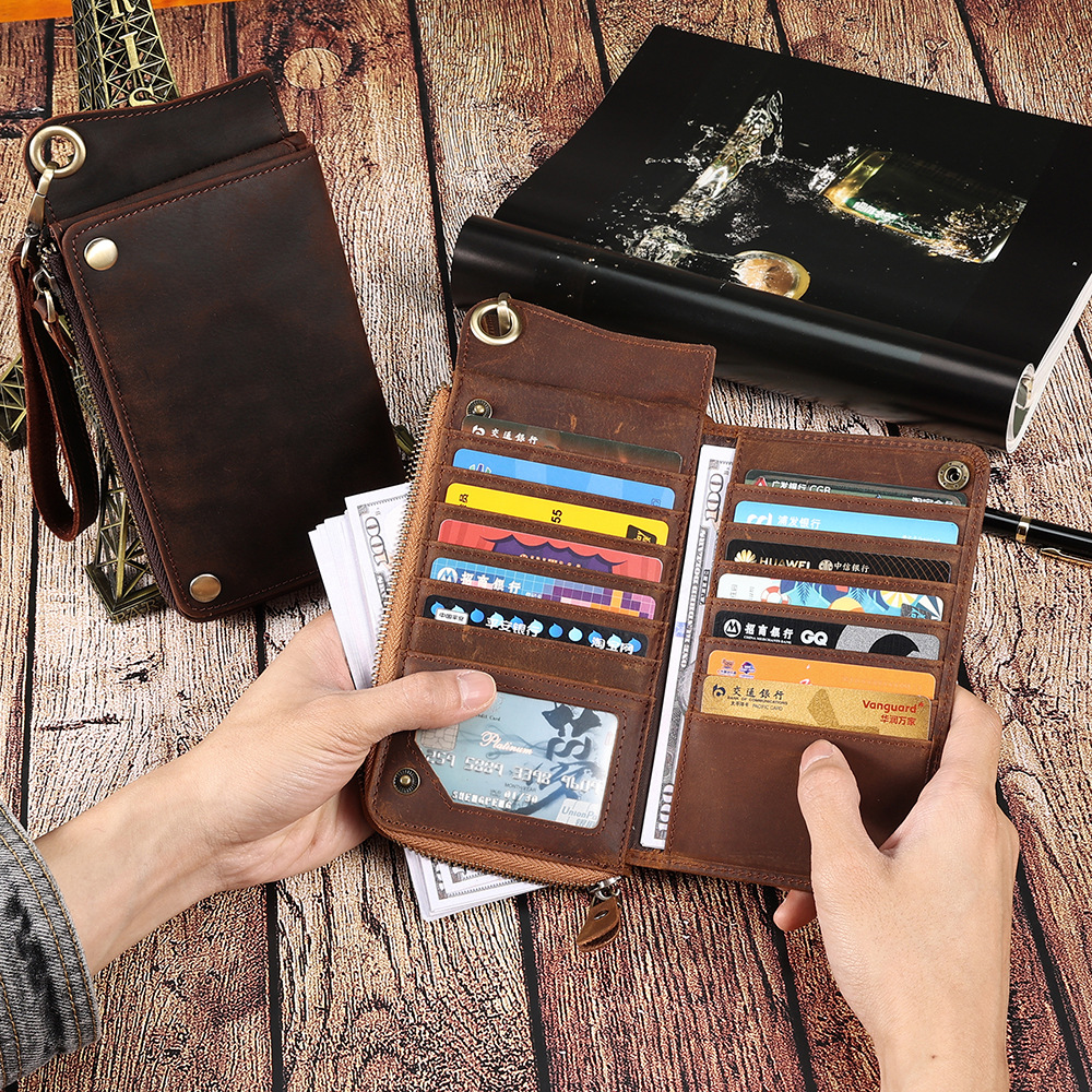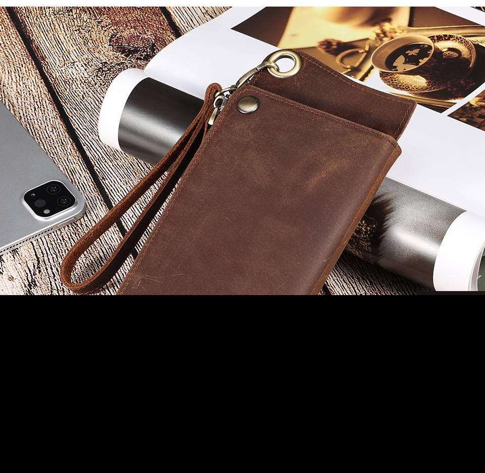 • メンズ マルチカード スロット本革財布レトロ大容量クラッチメンズ rfid 抗磁性クレイジーホースレザー長財布