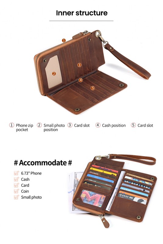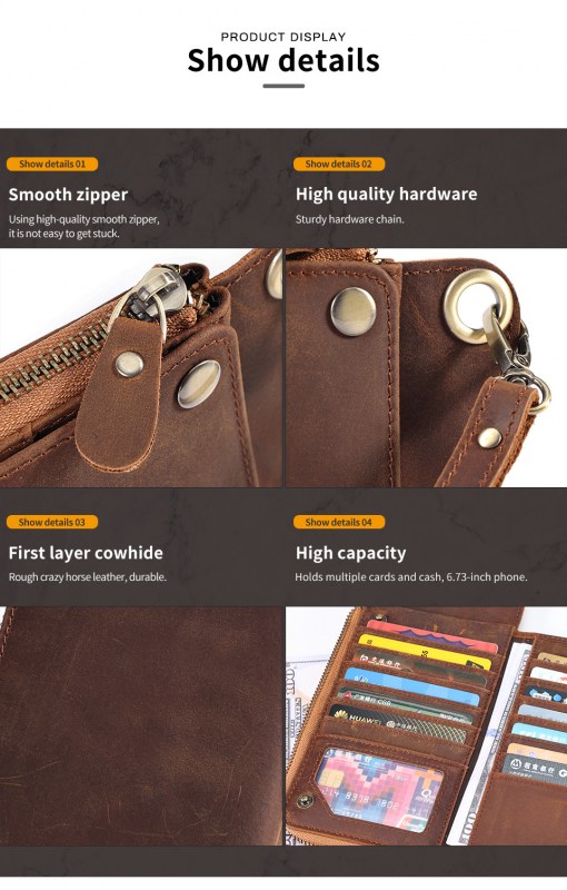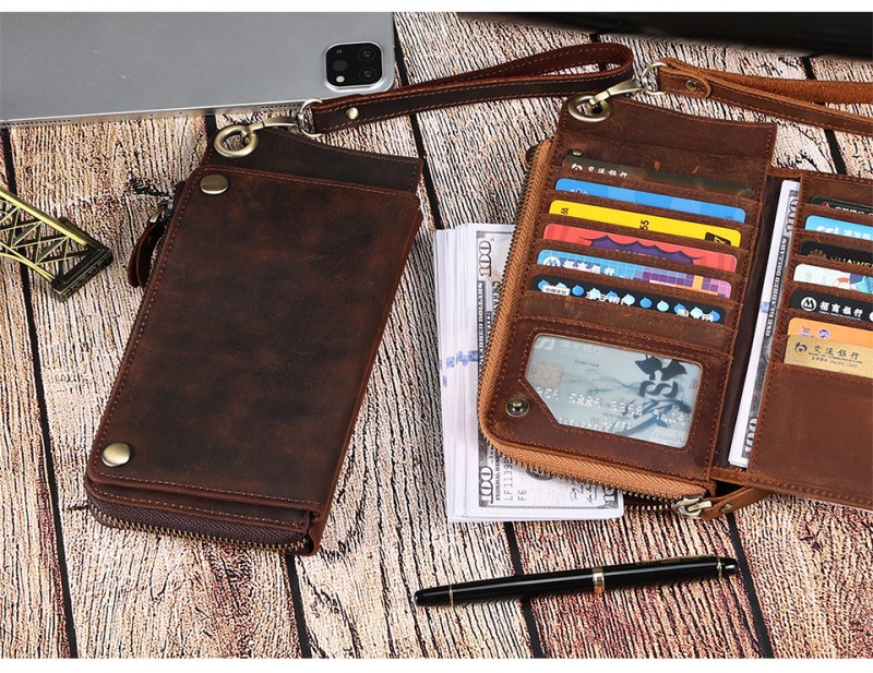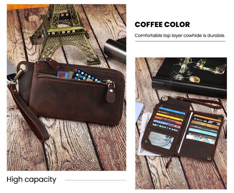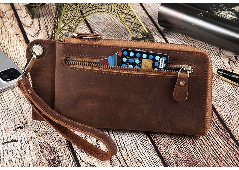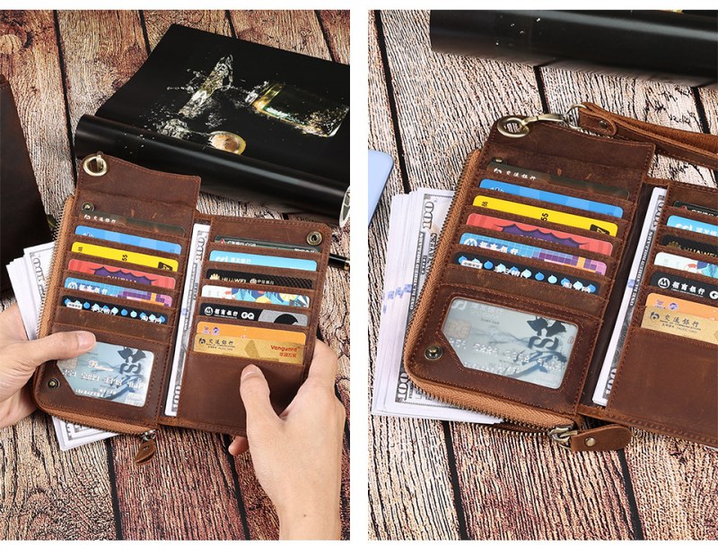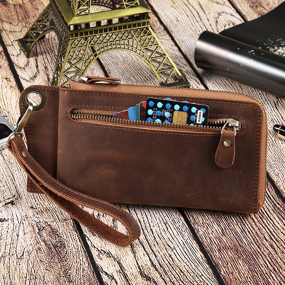 • メンズ マルチカード スロット本革財布レトロ大容量クラッチメンズ rfid 抗磁性クレイジーホースレザー長財布